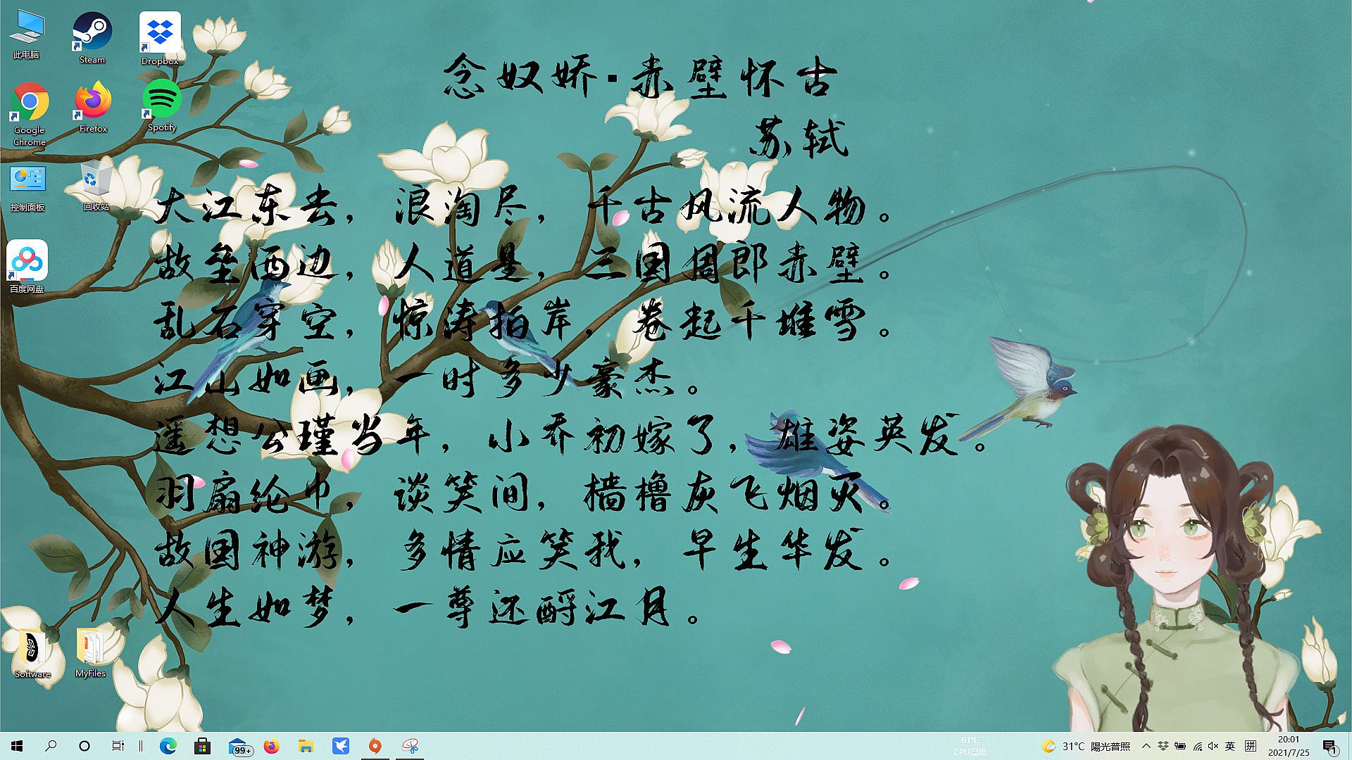 This app's virtual character(poetry tuber) will read ancient Chinese poetry and express the past masterpiece poetry words on your desktop, with selected beautiful background wallpaper.