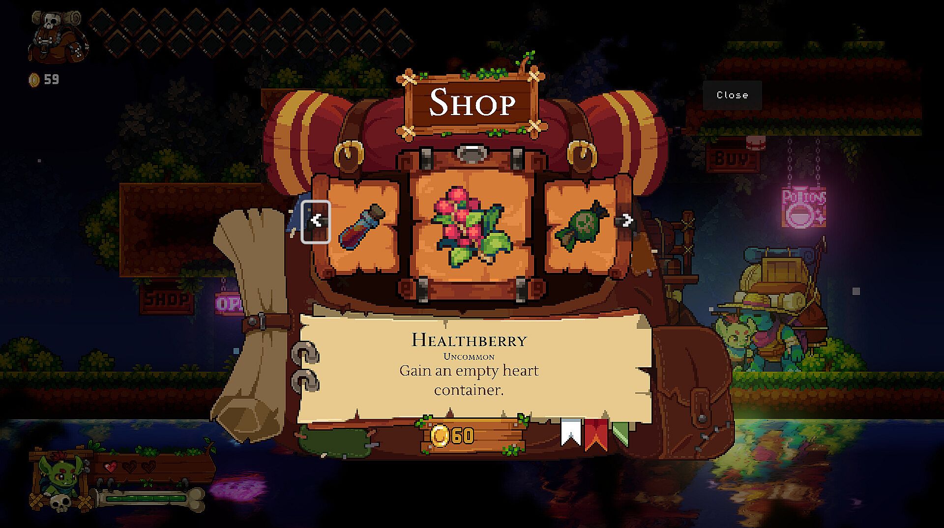 Strategically manage your gold to purchase upgrades from the shop, for effects such as healing, increased movement speed, extra jumps, and even new abilities! Unlock secret items and content for every new game you play.