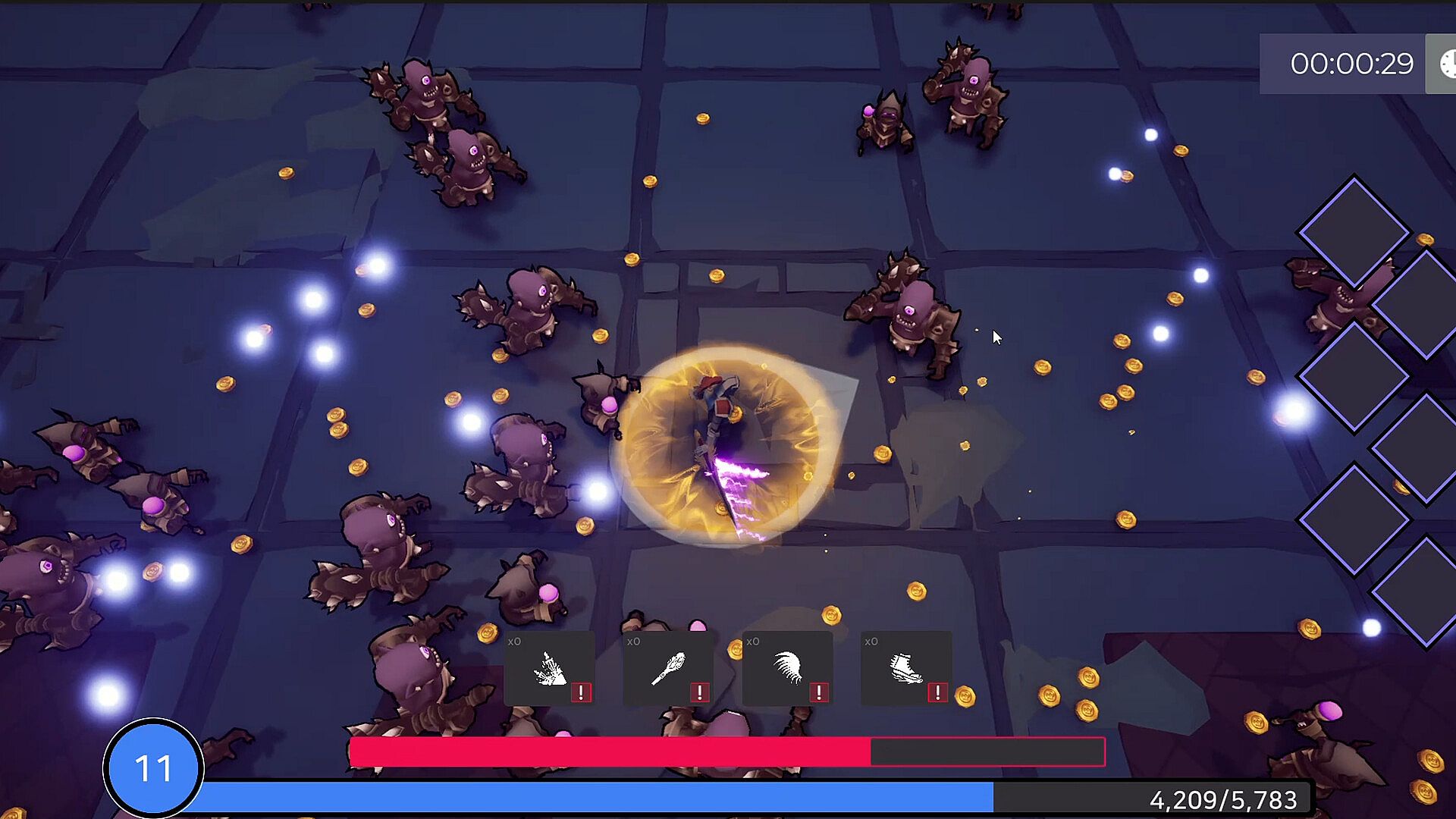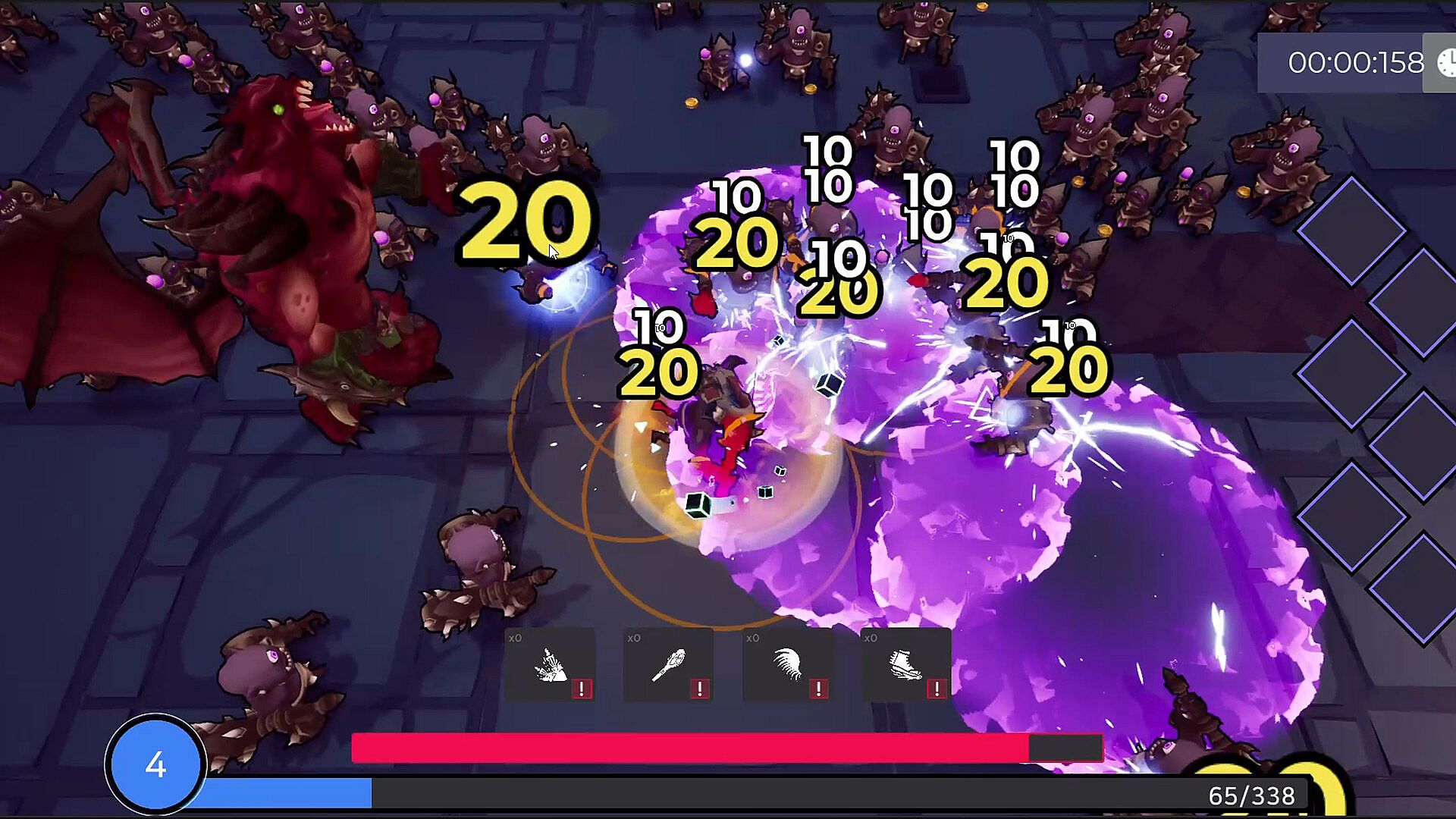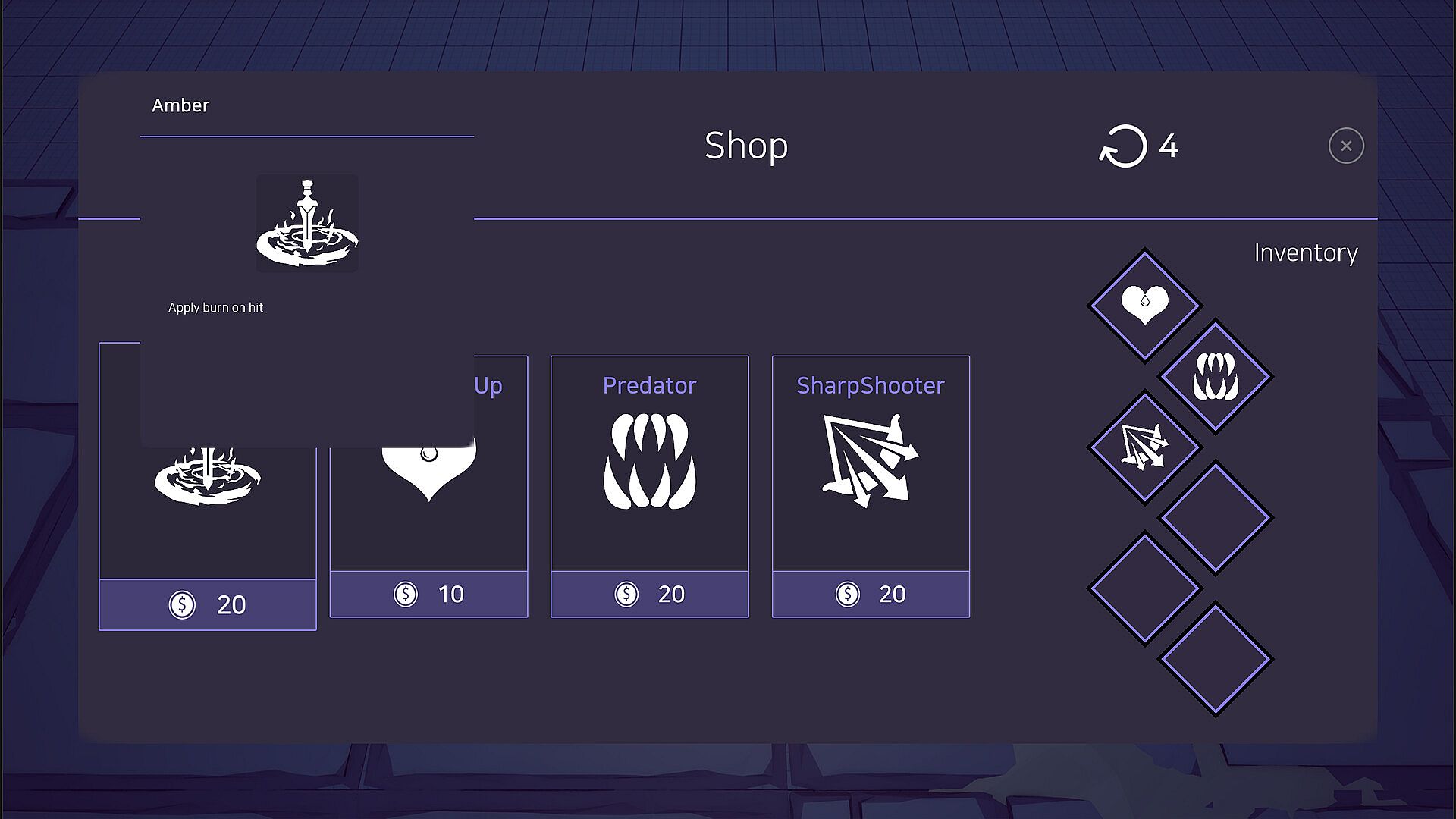 • Two strategic choices await you after every round. First, set the direction of your build by choosing one of three skills offered upon leveling up. Next, complete your strategy by purchasing items from the shop with the resources you've gathered, and prepare to take on the next round.