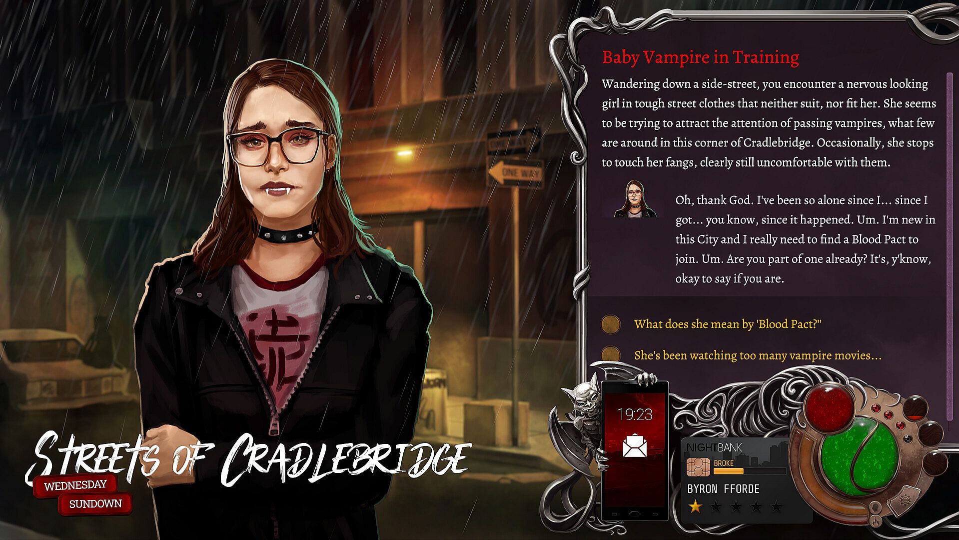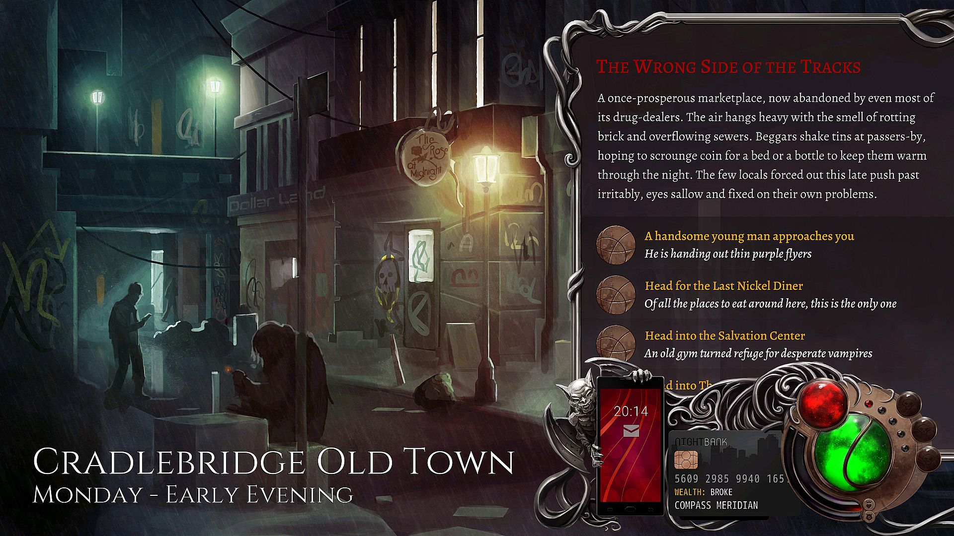 Unfortunately, it's a new world out there. Vampires have finally been exposed, and although your existence is presently tolerated, your constant thirst for blood is not. You arrived in the one city willing to promise vampires a fresh start, only to find suspicion and paranoia waiting on its dark streets. But death could not hold you, and fear will not hold you back.