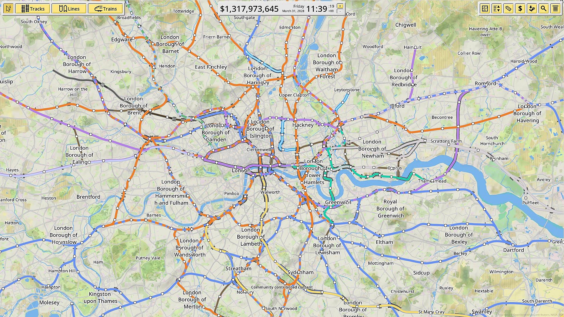 • Demand flow based on time of day and time of week, with time zone support. Find it boring when night time comes and the stations are deserted? No problem, start a new line ten time zones away.