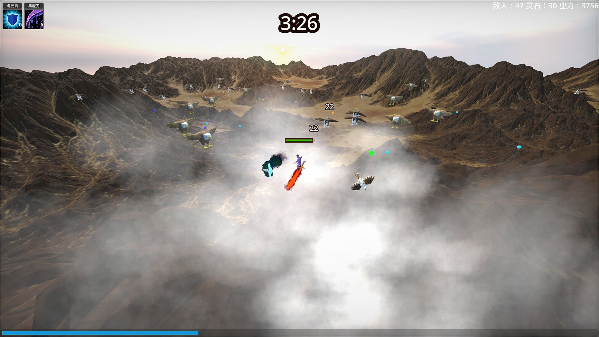 The protagonist is an immortal cultivator, flying on a sword. He can fly to higher skies, and the difficulty of the battle increases accordingly.