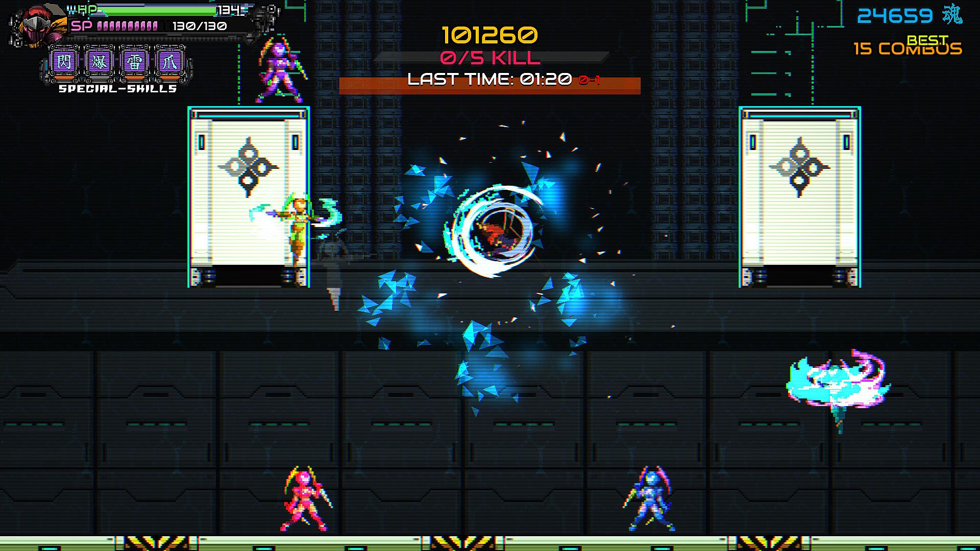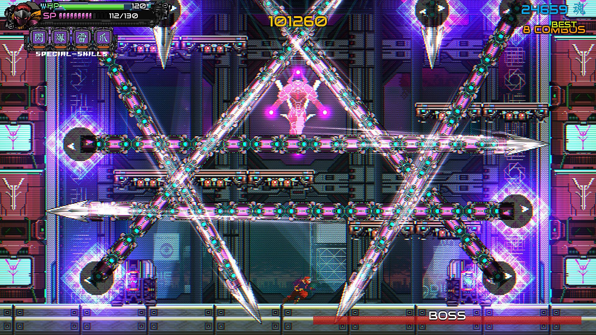 「Ninja Issen」 is a retro-style ninja platformer that features a variety of hyper action, 1 vs. many battles, and dynamic boss fights. Paying homage to the ninja games of the classic 8-16 bit era, 「Ninja Issen」 is full of ninjas, robots, neon lights, and dark atmosphere that overwhelms the streets of the future metropolis.