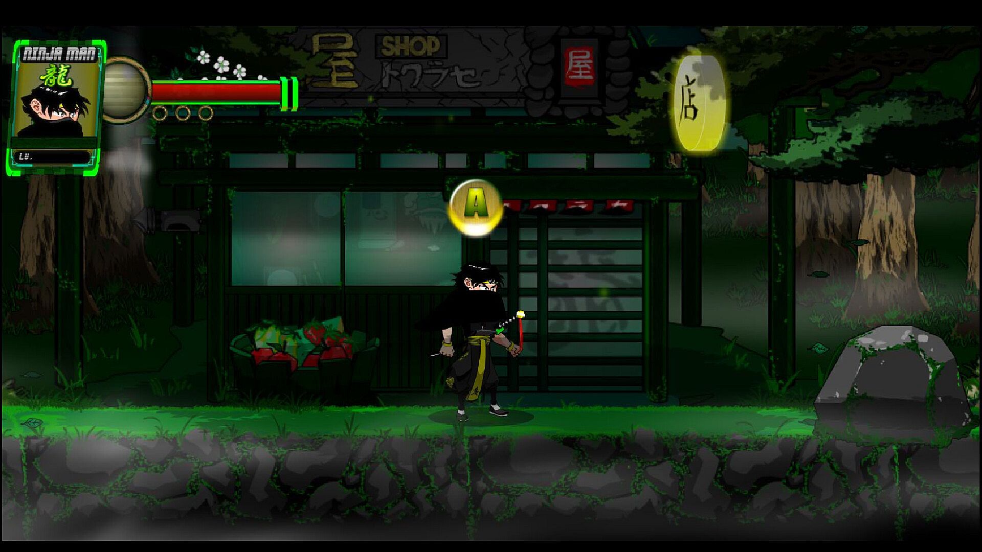 You play as Ninja Man a who was washed up on a beach as a child from the African slave trade boats found on Gou (ゴウ) Island by the locals and raised by the Japanese & Chinese traditions, teachings and combat. In Ninja Man - Land Of The Rising Sun you play through a open world where you can craft, build fish, swim and fight your way through the open world. Moving freely area to area buying new clothes, weapons, items and farming for items and materials to help you craft the items or weapons you need.