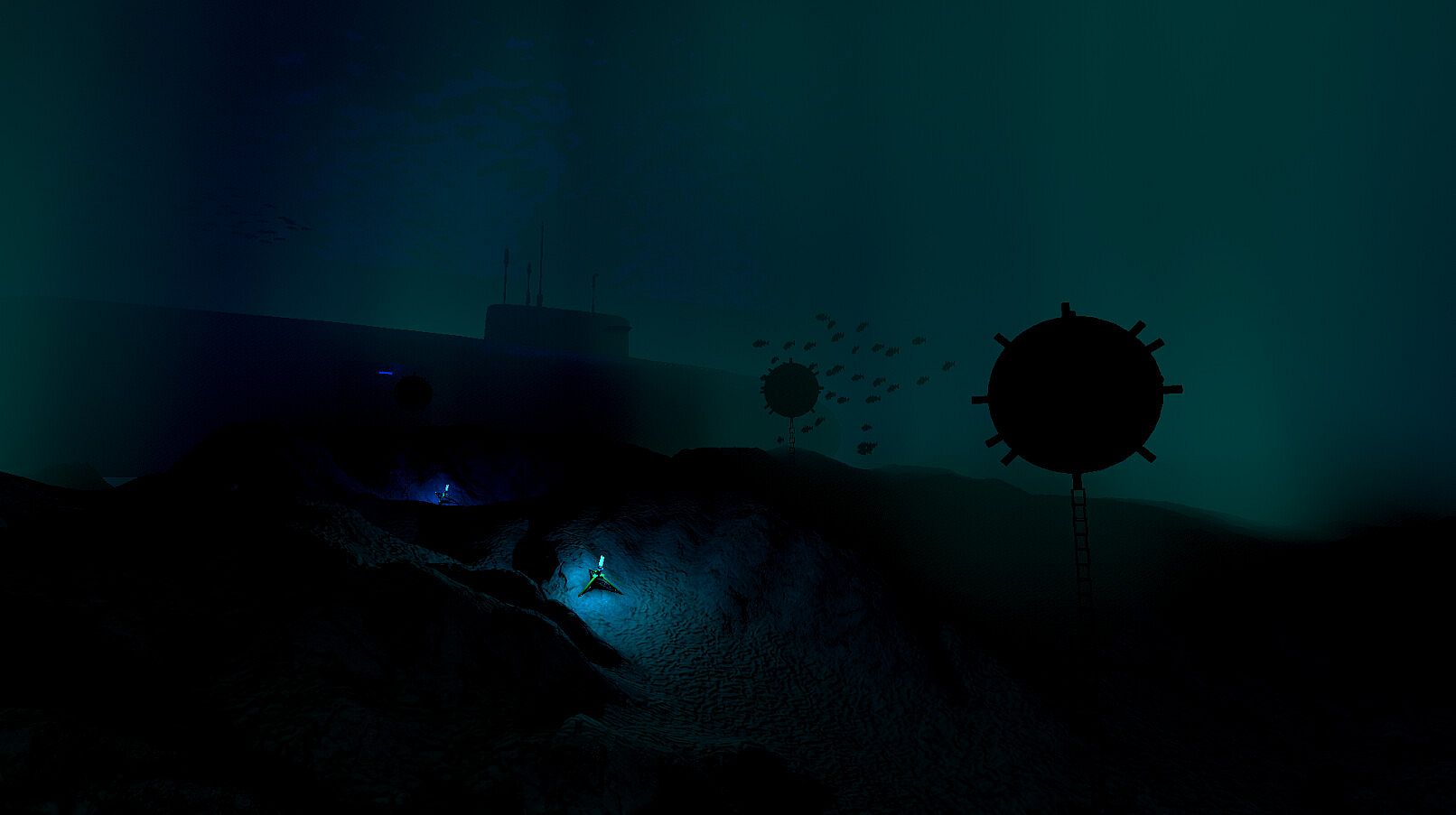 You and up to 7 other employees wearing the cheapest deep-dive suit money can buy are sent in to recover old materials from these facilities and return it to your captains submarine!