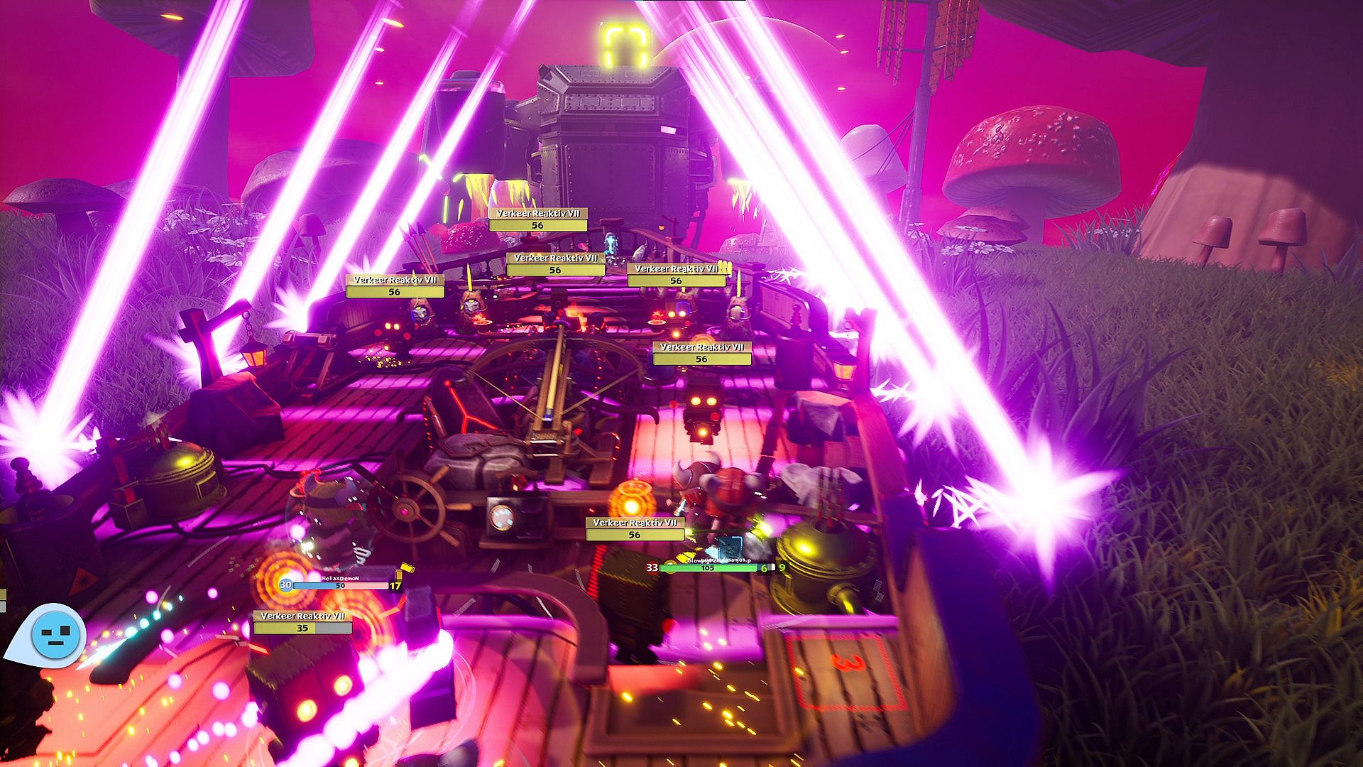 Play with 1-4 players online or local in this co-op roguelike game as you and the crew manage a vehicle to escape this crazy world. In your journey, level up, choose your skills and loot better gear from defeated enemies and rewards. But every important decision must be voted on with the crew, such as, quests, upgrades and the next destination.
