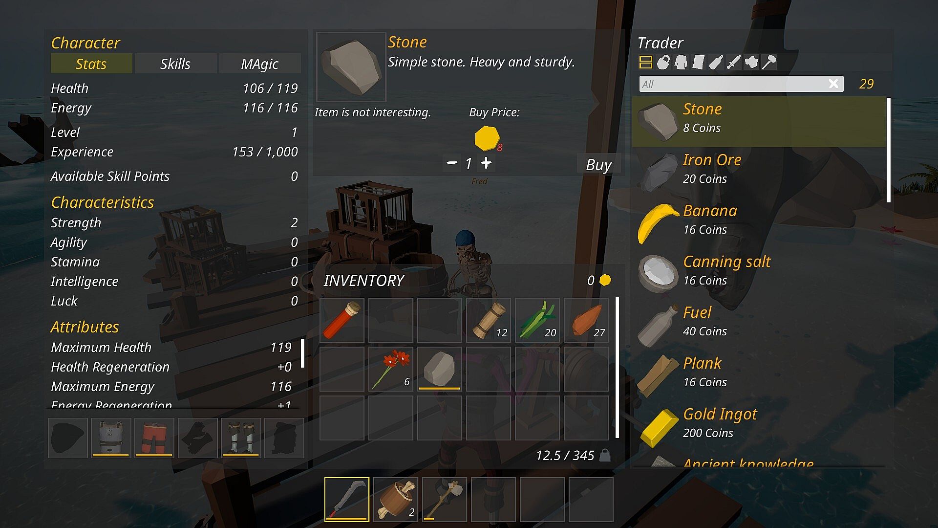 No One's Island offers a world where survival is shaped not only by nature but also by economic intelligence. Merchants you can encounter in forests, mysterious islands, and other regions, each selling products specific to their category.