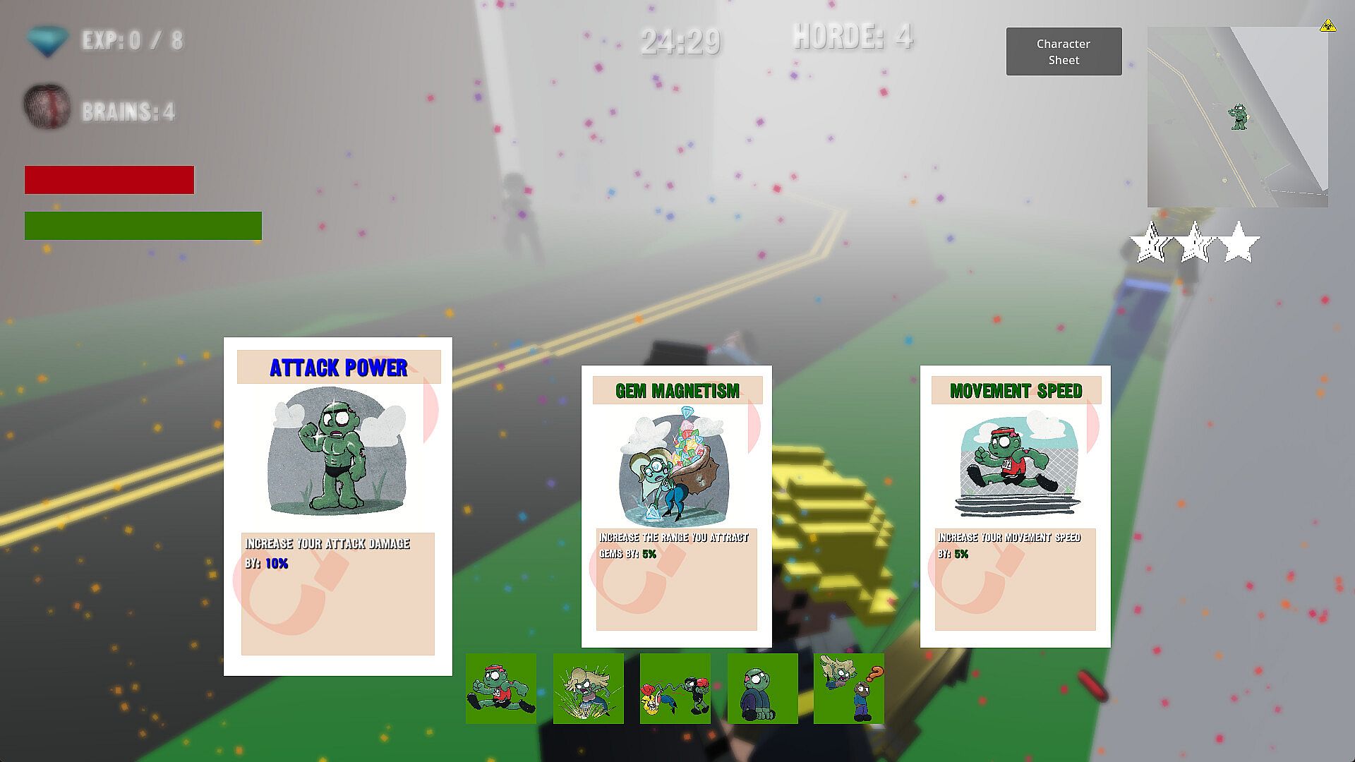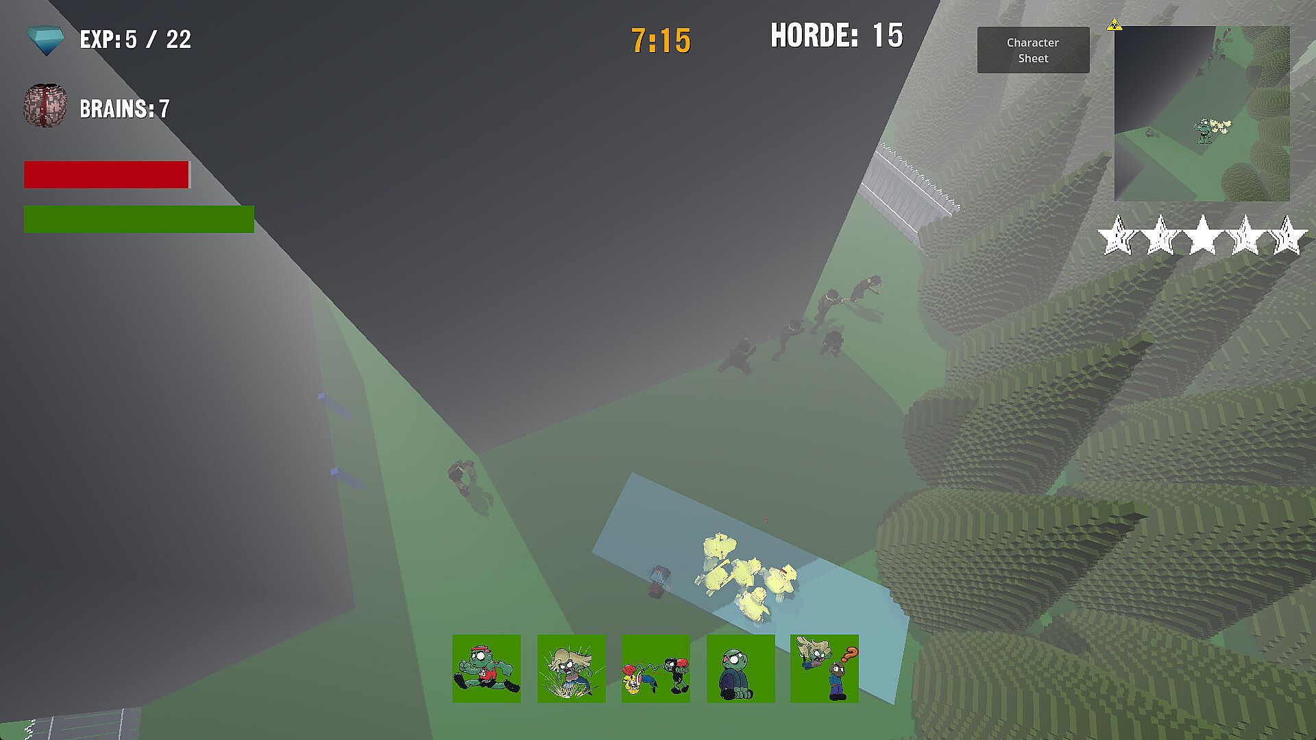 • Meta-Progression & Horde Building: Devour the brains of downed NPCs to earn meta-experience and convert them into loyal horde members. Later, invest your hard-won brains in a talent tree to unlock potent abilities and boost your stats.