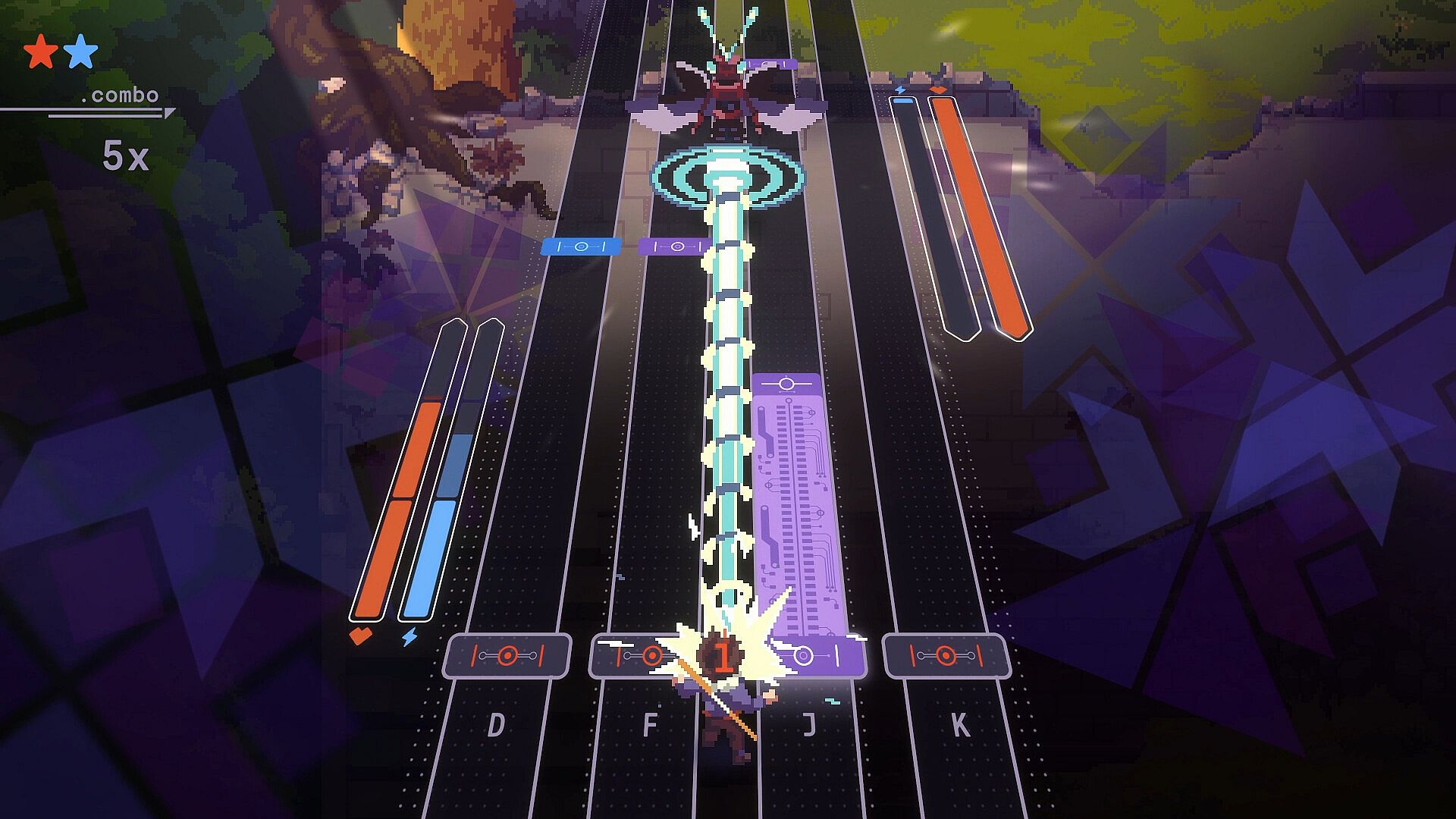 • Master an entirely skill based rhythm combat system with 101 playable tracks.