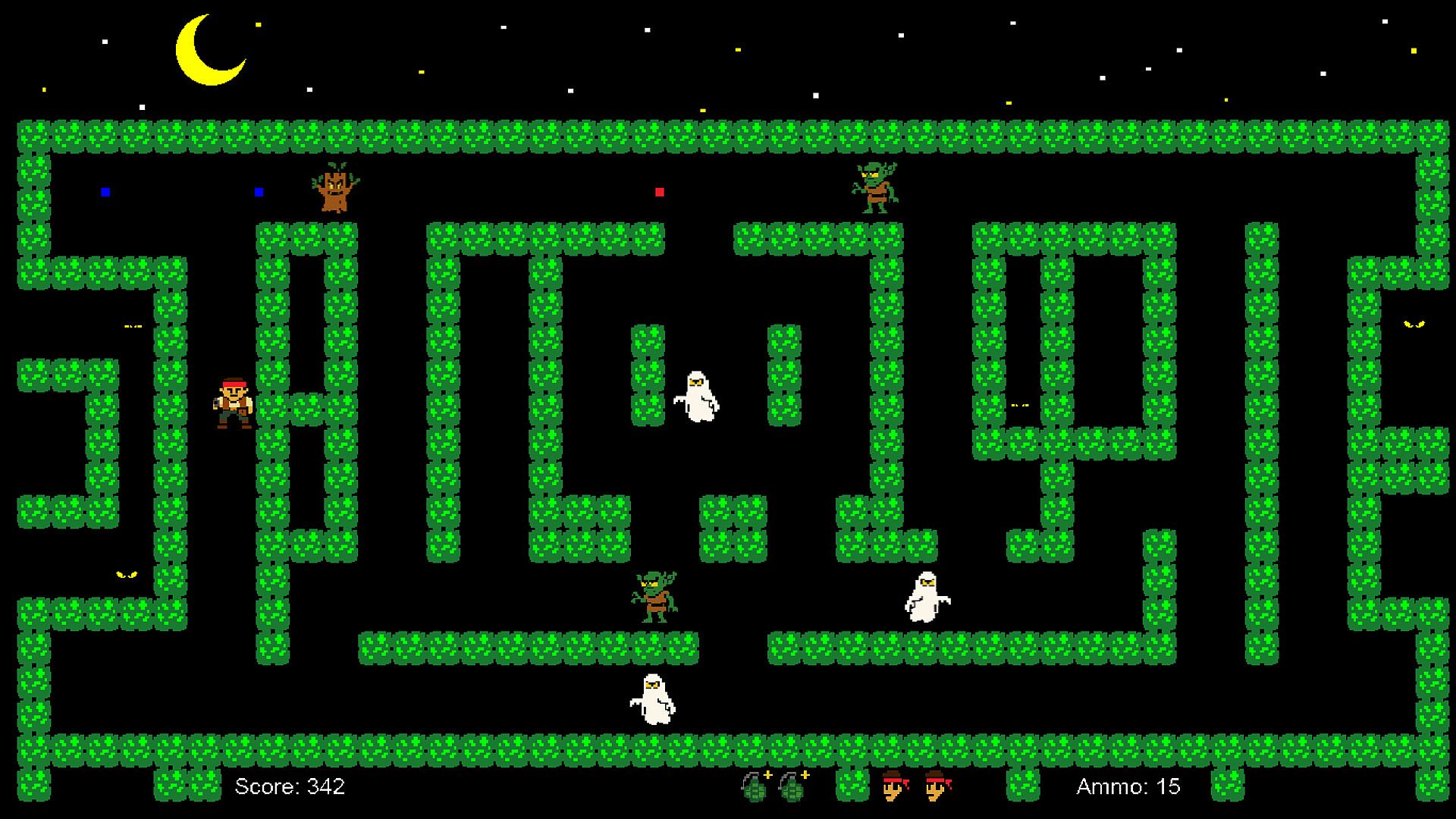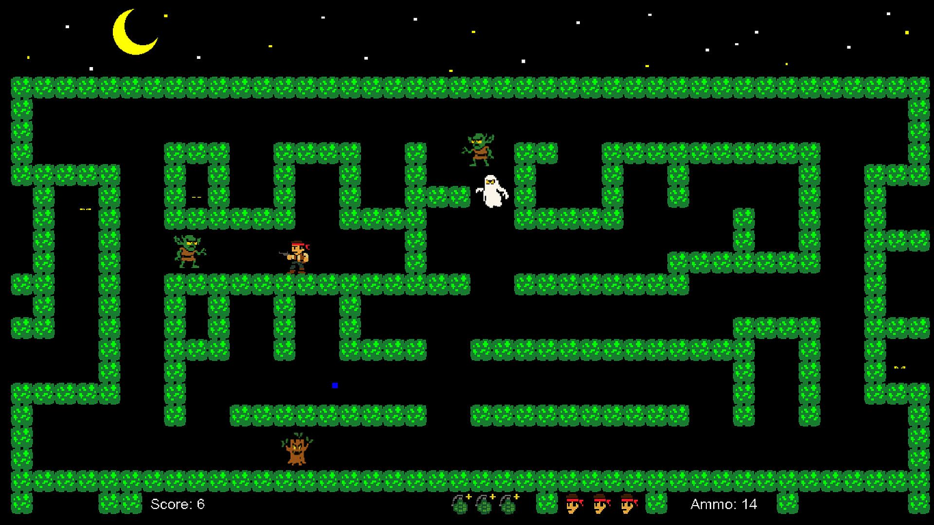 • Evade, shoot, or outmaneuver monsters in a top-down hedge maze.