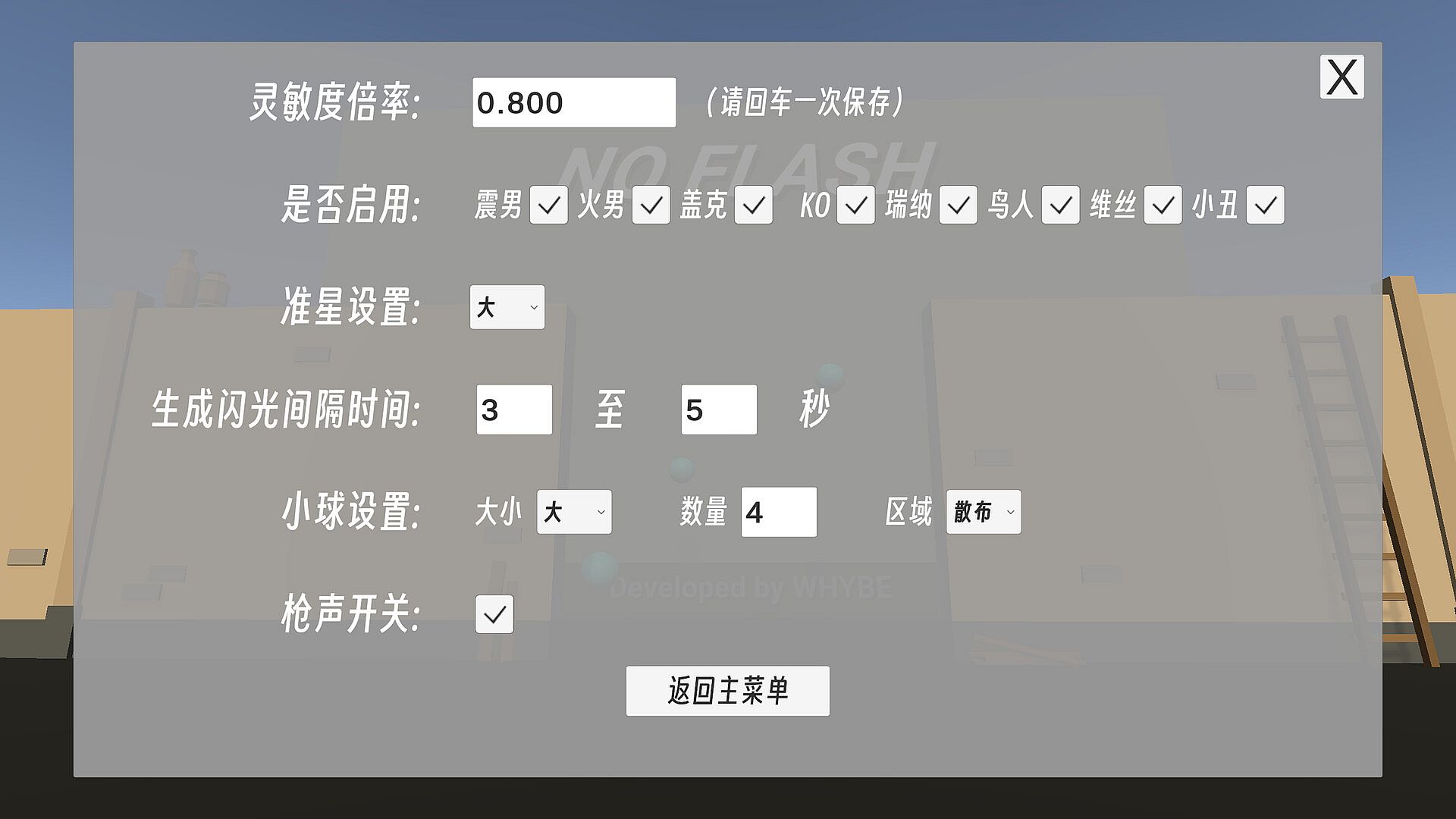 This is a flash-dodging training game specifically designed for VALORANT, featuring nearly all in-game flash effects. It innovatively combines a dot-clicking mechanic, challenging players to precisely hit targets while swiftly avoiding sudden flashes. This dual-tasking gameplay enhances reaction speed and multitasking skills, making it an effective training tool for players.