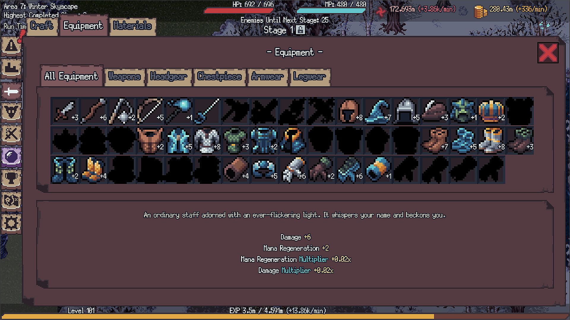 • Discover, craft, and upgrade Equipment in order to make yourself stronger.