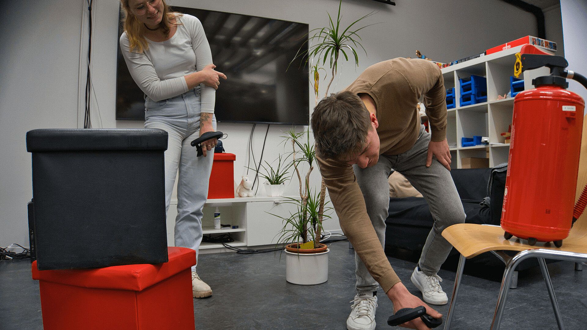 Free your room of spooky creatures in Ghost Hunter! Use the virbations of the controllers to track their location and pull them apart!