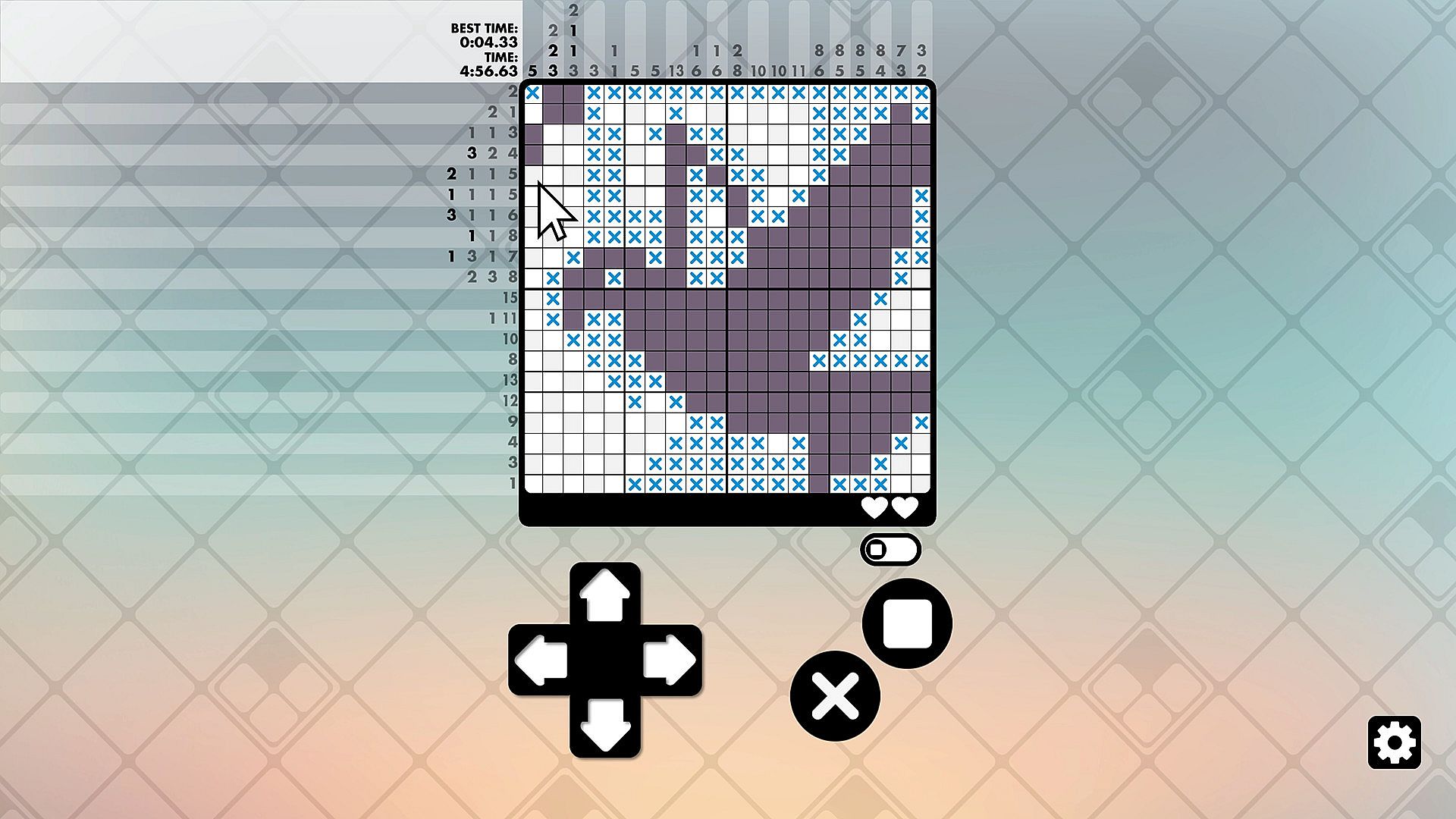 • A 'Hearts' system designed to add another layer of challenge to standard picross.