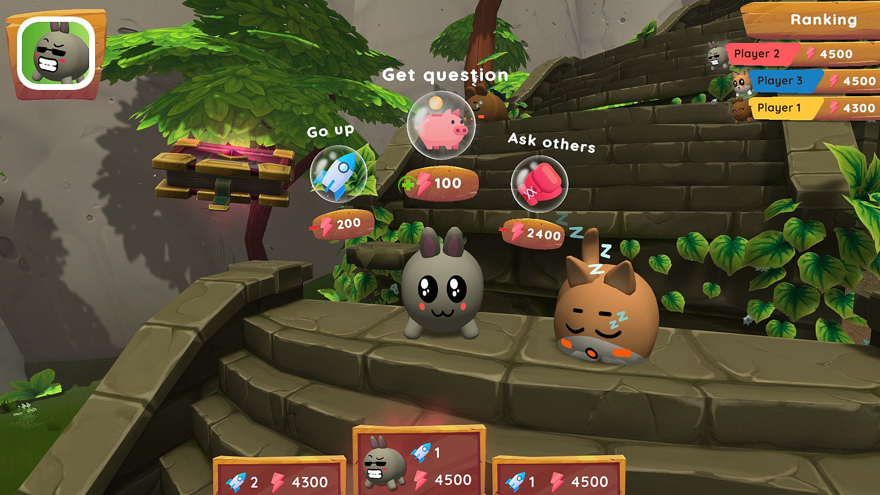 Gather points by answering increasingly difficult questions correctly. Then use these points to ascend to the top or hinder the progress of others!Sometimes minigames will appear that every noodle will participate in and can score additional points.