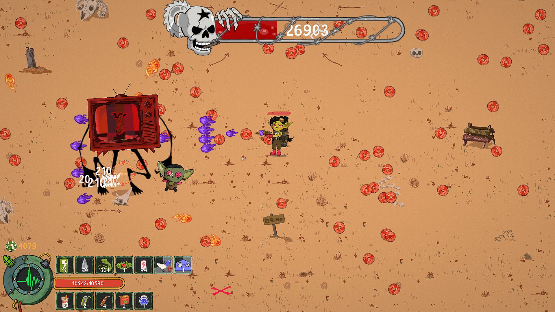 Join Nora, a goblin engineer, and her new companion Frank — a mimic suitcase — as they fight through endless hordes of enemies to rescue her friends and family from a mysterious villain. Test your reflexes in this chaotic and charming auto-shooter!