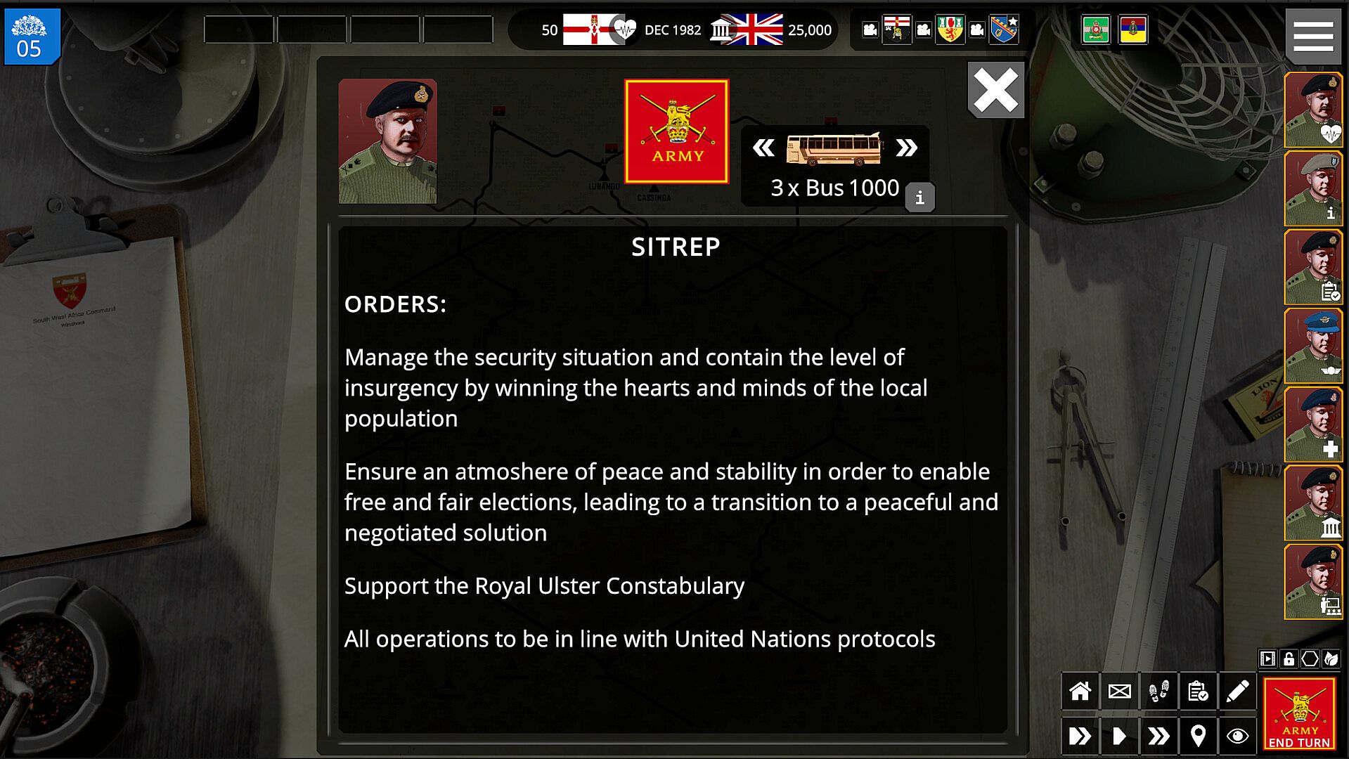 As the British Armed Forces deployed into Northern Ireland, you will need to win the Hearts and Minds of the local population and balance the aspirations of both the Loyalists and the Nationalists.