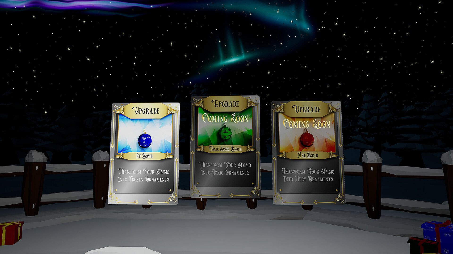 'Not The North Pole' immerses players in a captivating virtual reality experience with two distinct game modes. In 'Survival Mode', prepare for endless excitement as you face relentless waves of enemies. Collect evil Christmas souls, upgrade your ammo, play with toys that have special abilities (wind up a nutcracker that helps protect you!), but whatever you do... Don't break the fence.