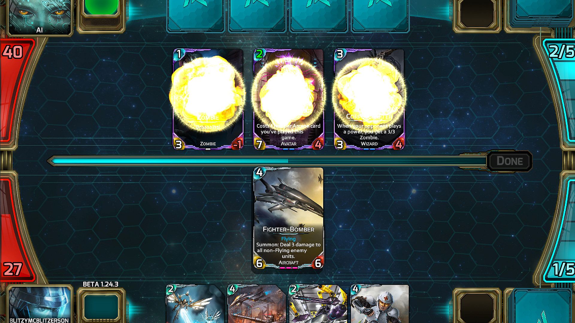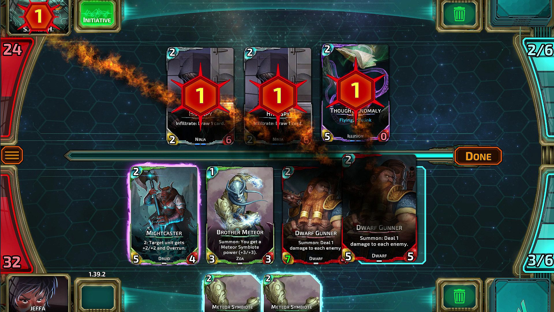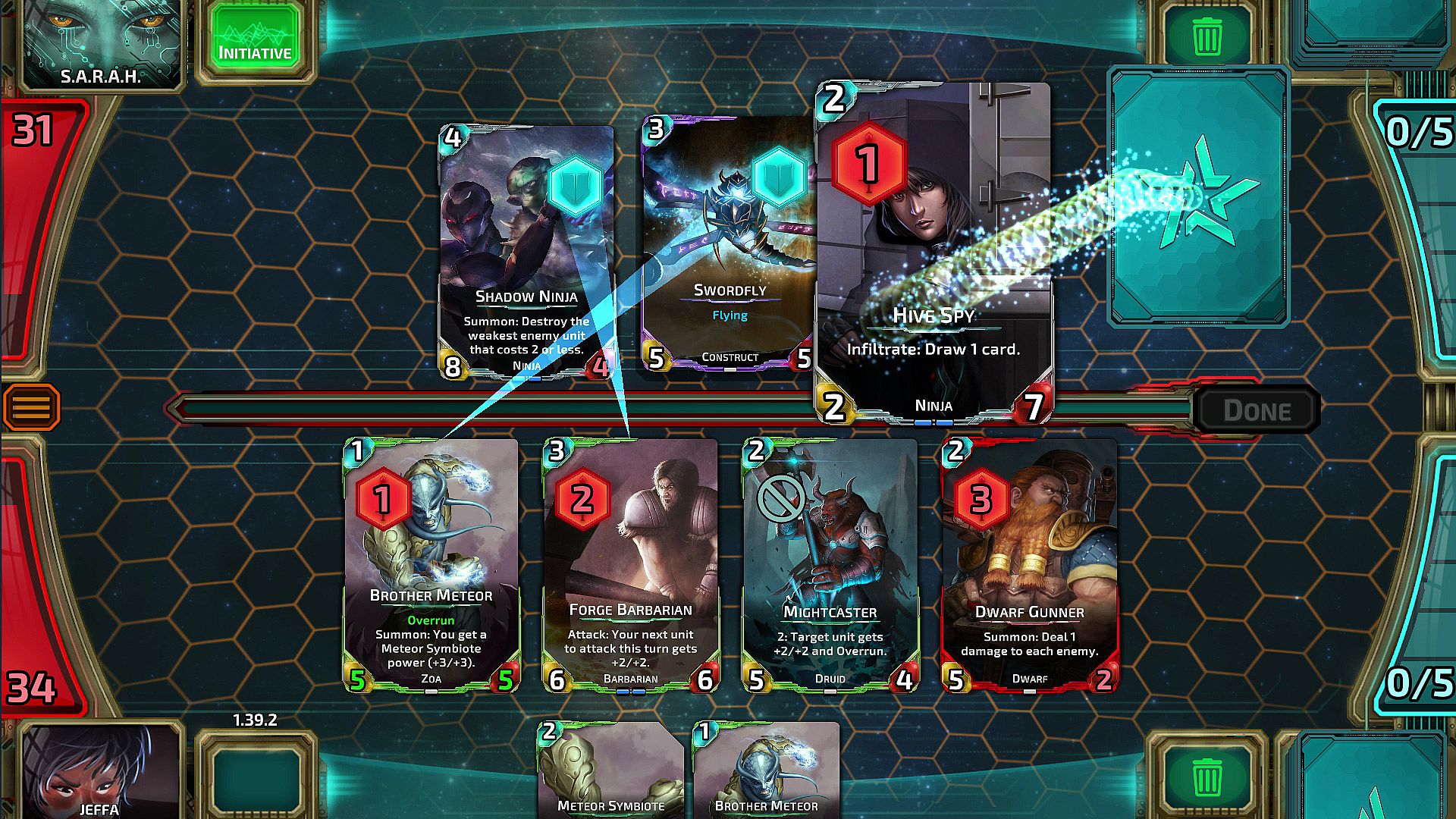 Built from the ground up for quick games and constant player interaction, every match of Nova Blitz is a blend of strategy and action. Each turn plays out in real time, and both players play at the same time. This cuts out all the downtime players experience in a normal collectible card game, and makes game play fast – games take less than 5 minutes each.