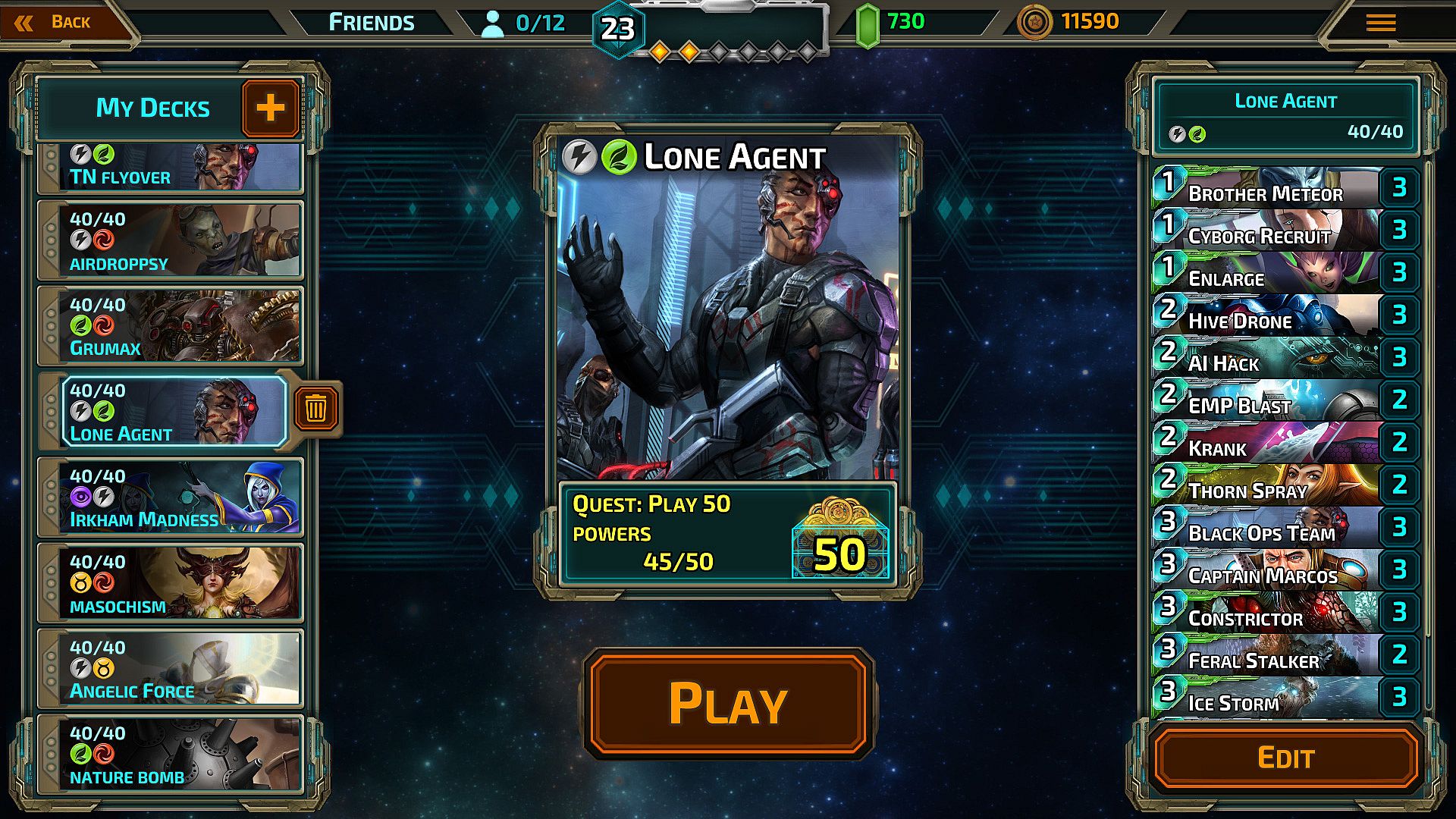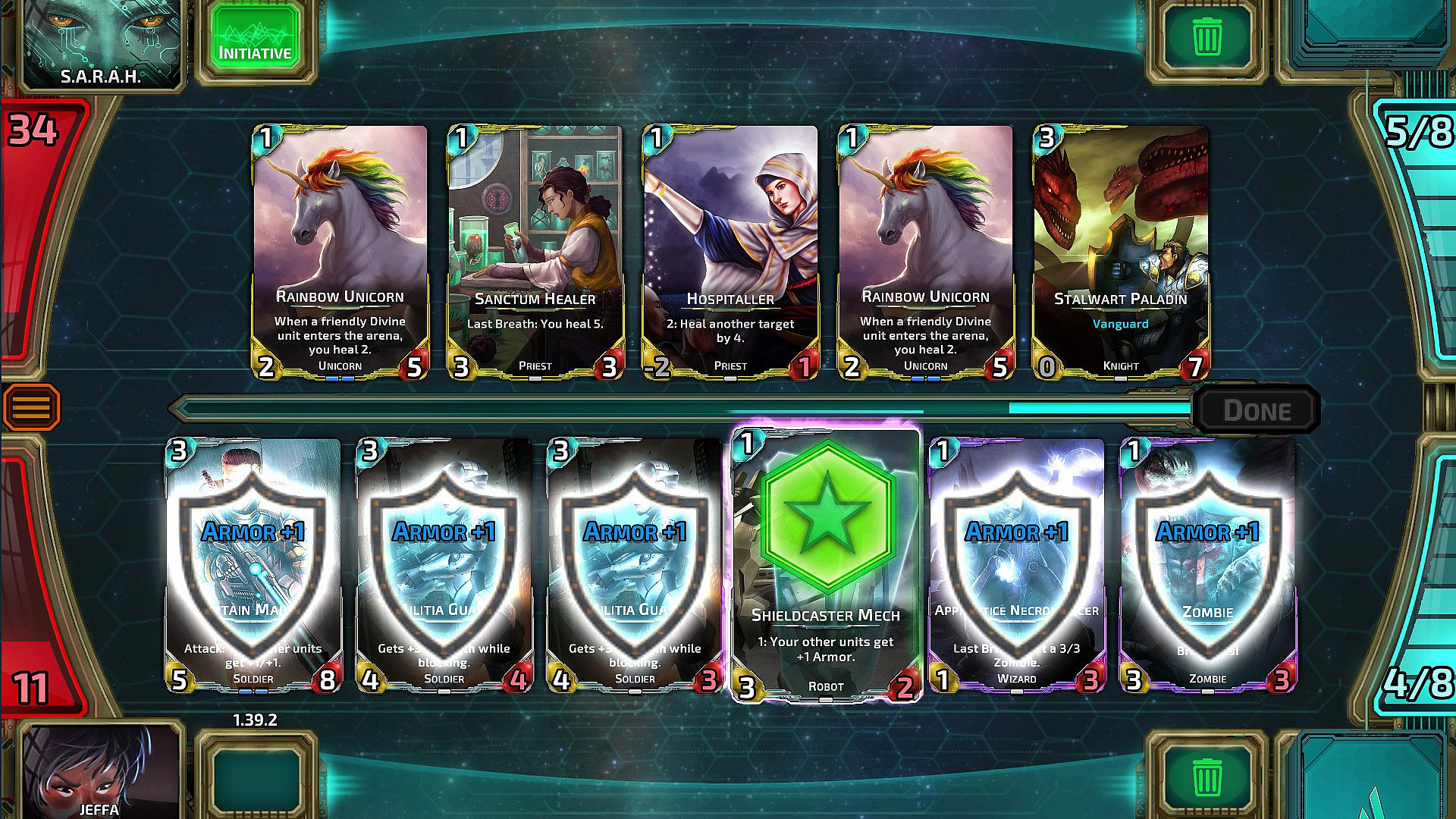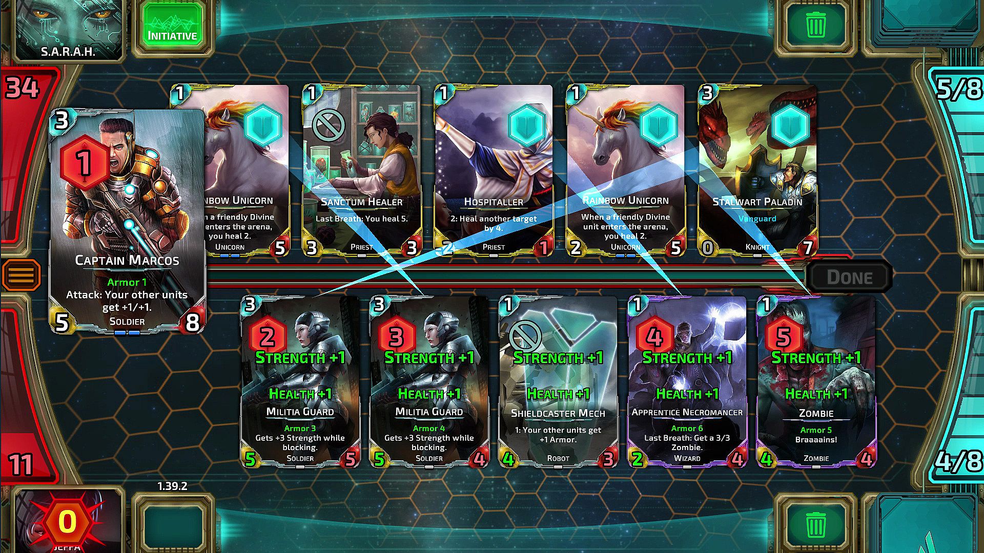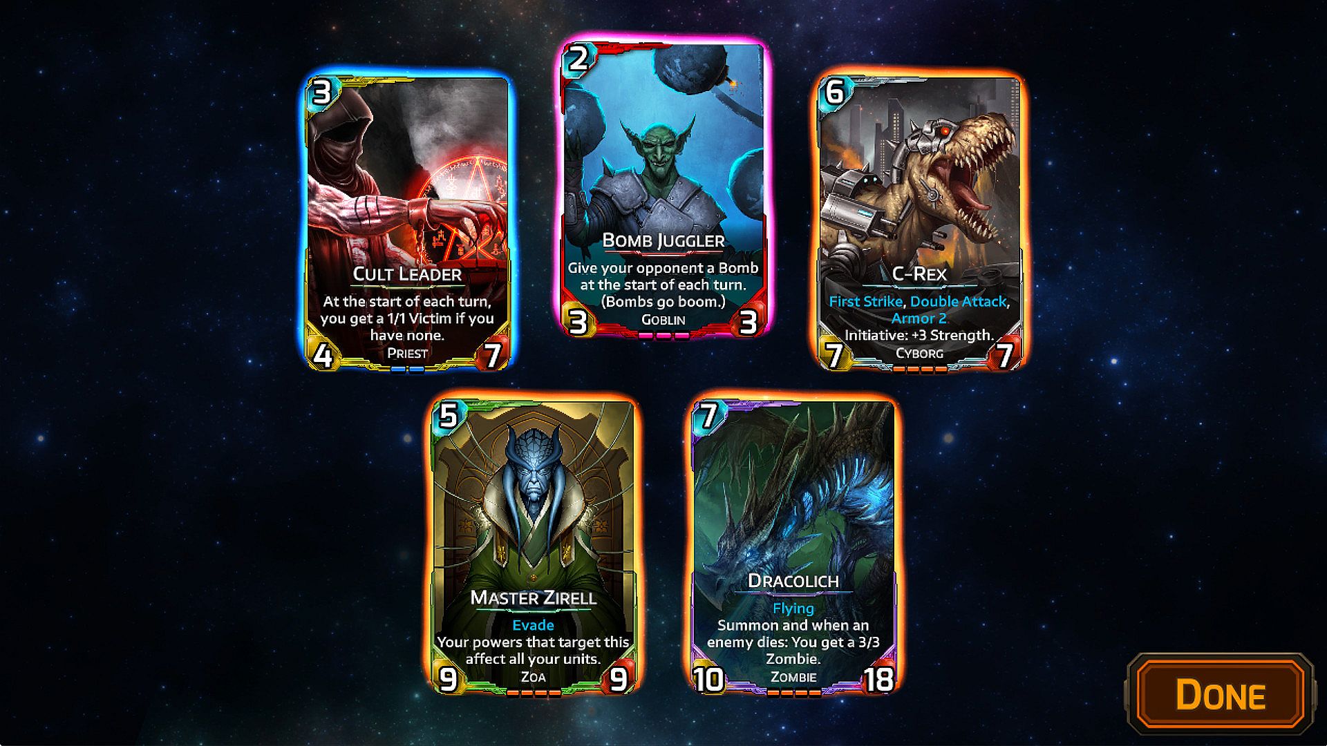 Built from the ground up for quick games and constant player interaction, every match of Nova Blitz is a blend of strategy and action. Each turn plays out in real time, and both players play at the same time. This cuts out all the downtime players experience in a normal collectible card game, and makes game play fast – games take less than 5 minutes each.