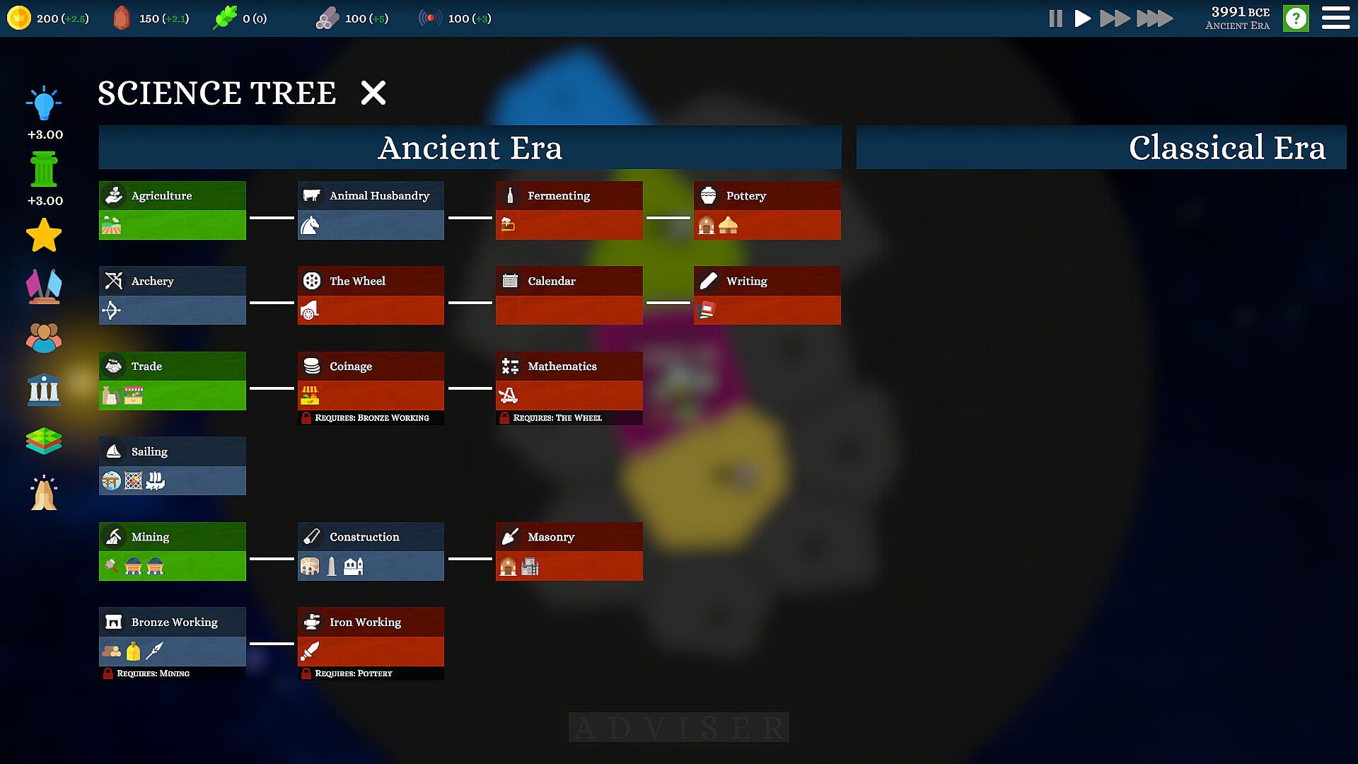 Research over 50 technologies, spread over 6 ages, starting in ancient times, and right through to the modern era.Diplomacy