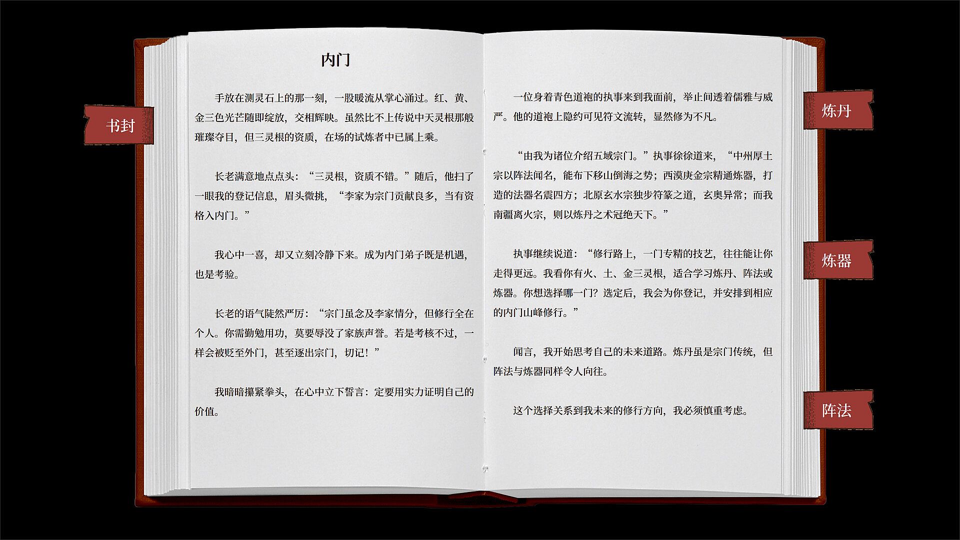 • Book-Style Interaction: Flip through chapters like a novel, with customizable fonts and themes.
