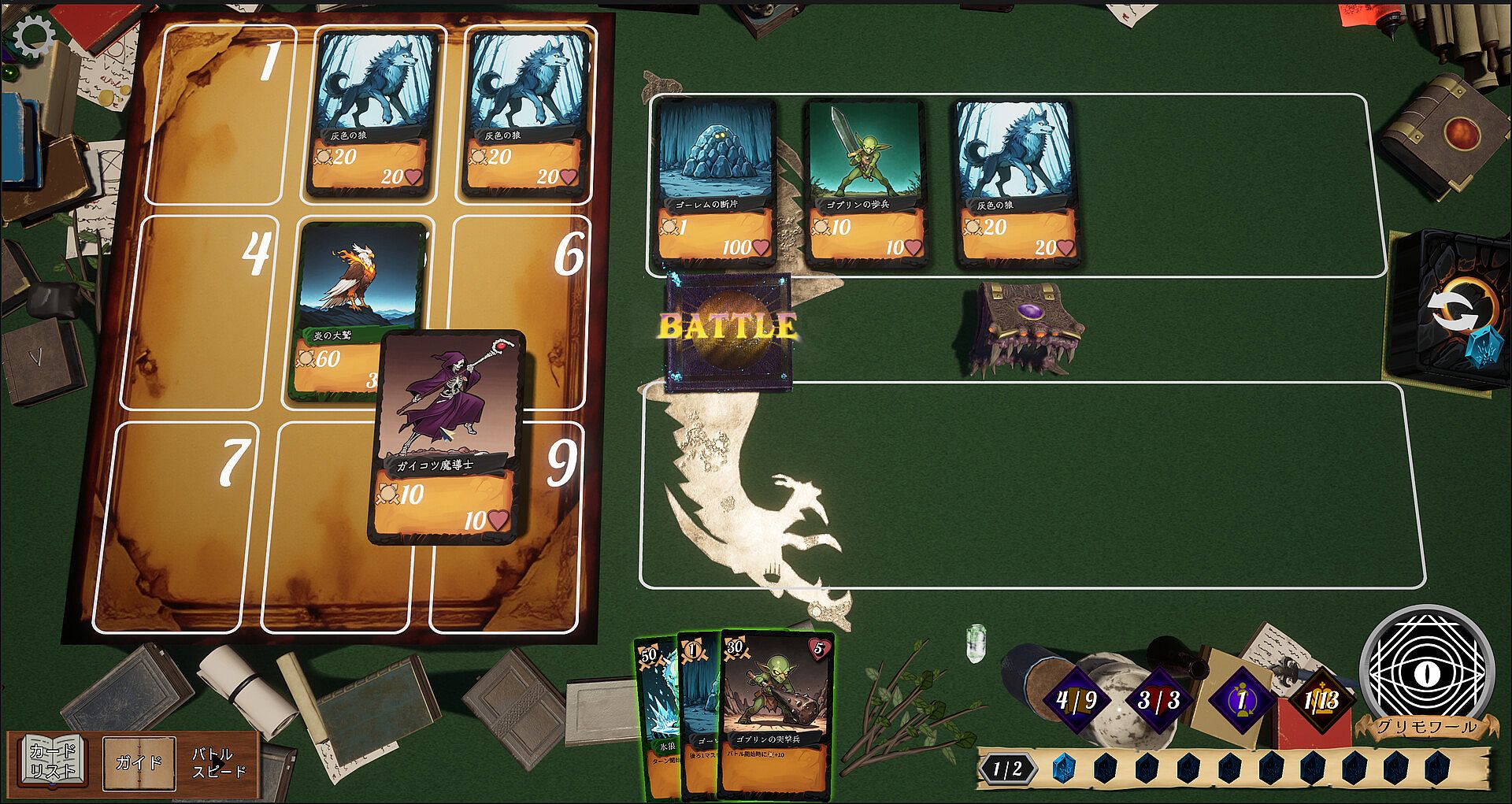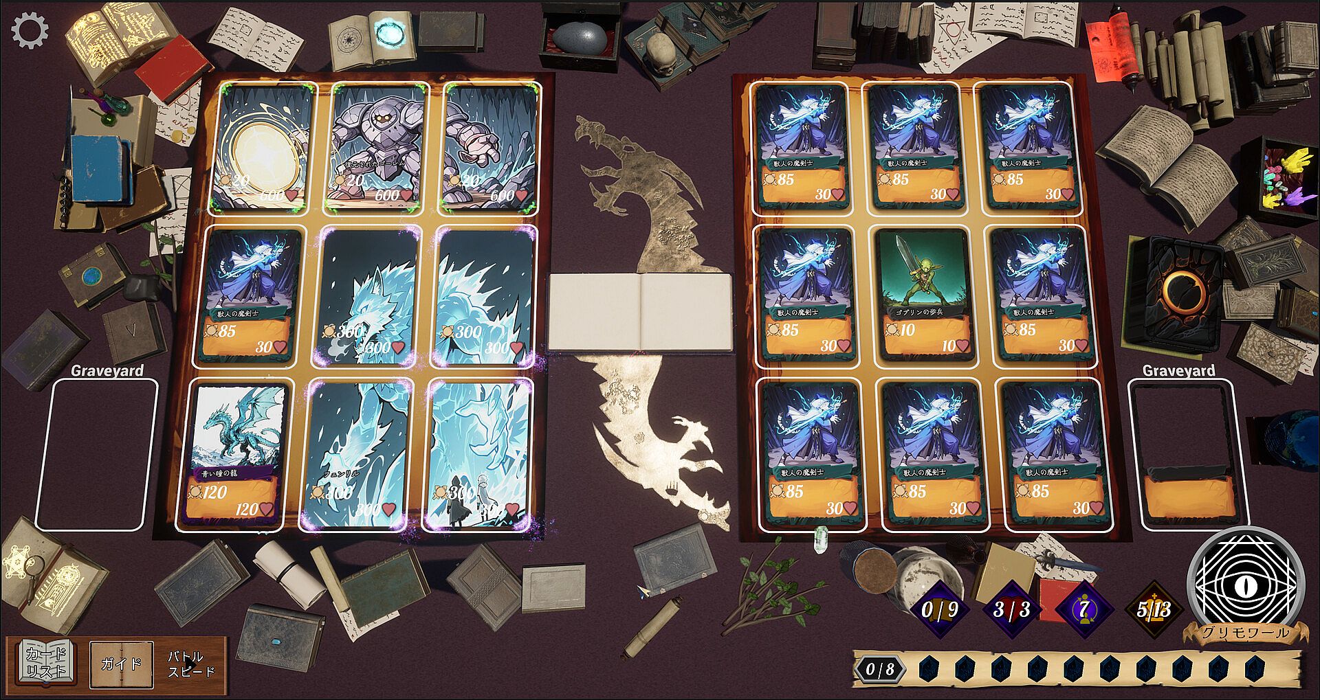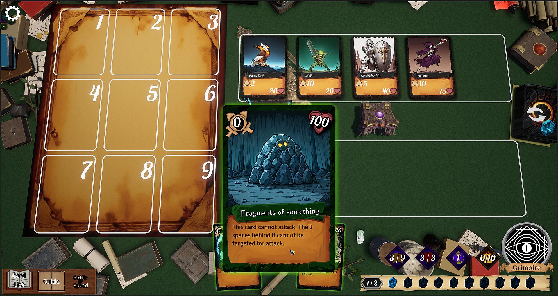 The key to victory lies in the 3x3 grid of 9 cards you arrange before the battle begins.