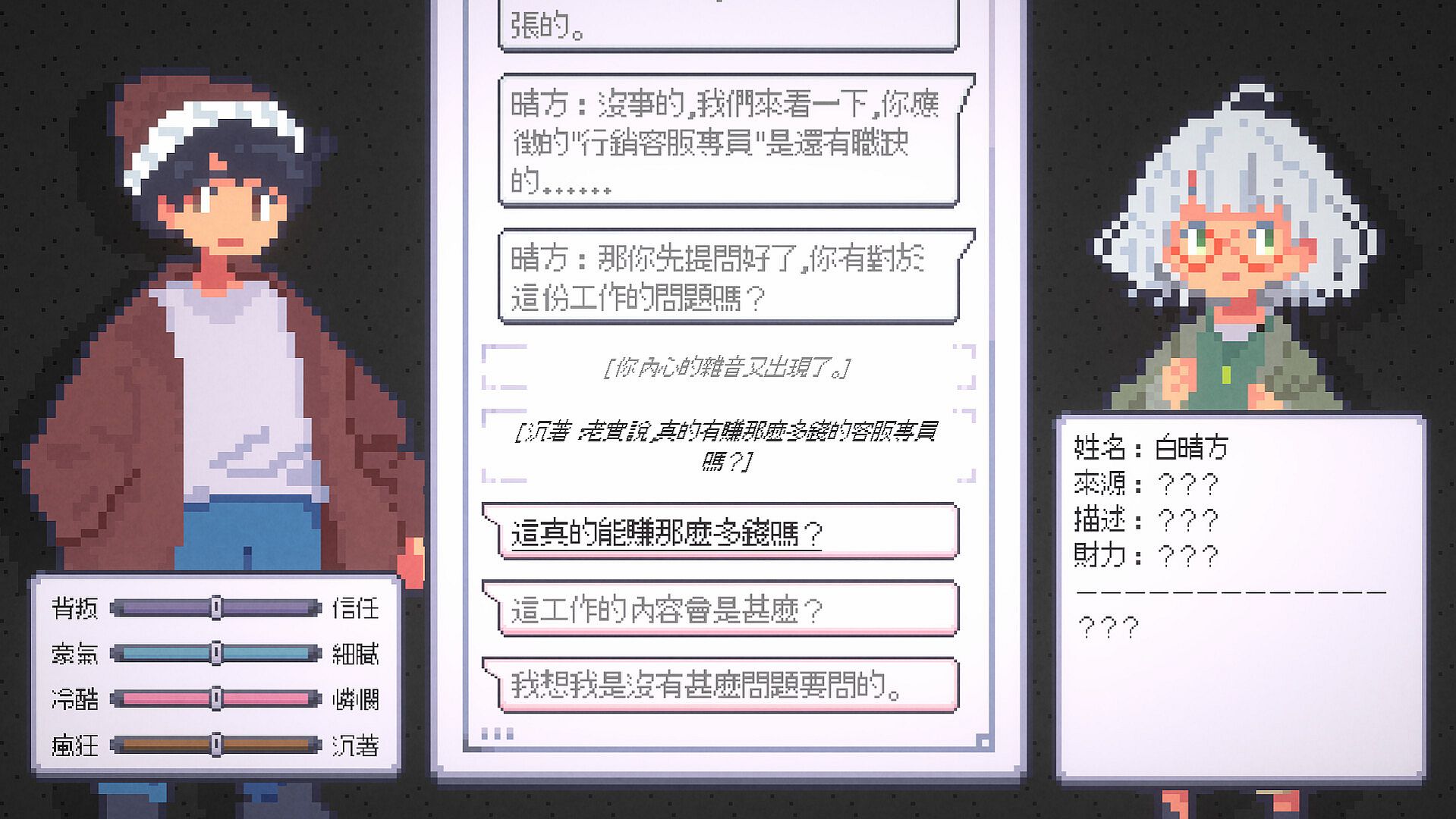Psychological “Battle” System – A turn-based design where victory comes through words; outsmart, deceive, or persuade your opponent in high-stakes dialogue showdowns.