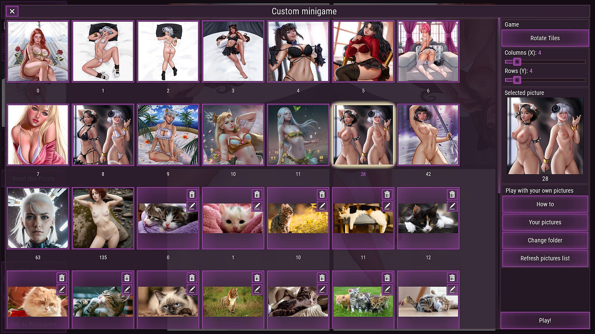 A collection of 191 solitaire variants + 21 puzzles with NSFW pictures.