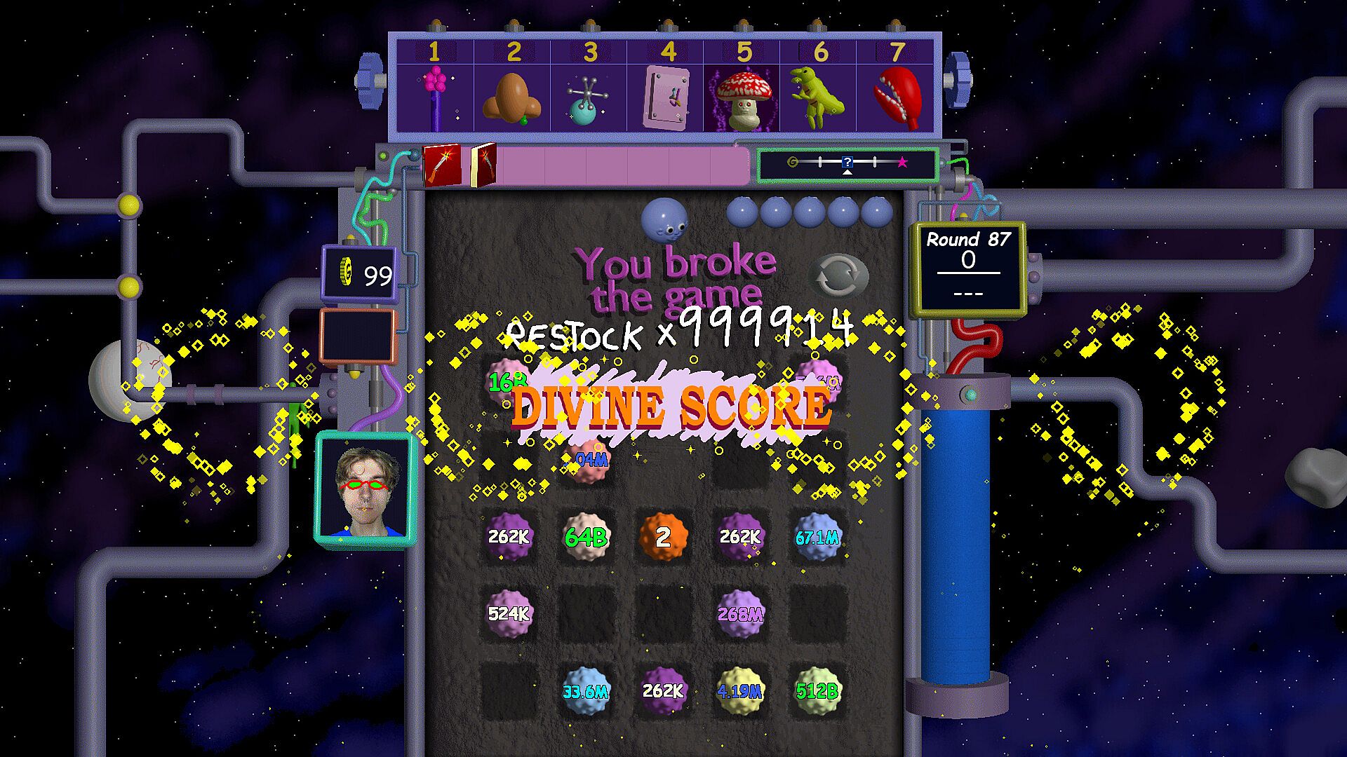 In this plinko-style roguelike, you'll launch your spherical friend, Nubby, down a pegboard to rack up increasingly large numbers. However, it's not all fun and games. You're still a low-ranking employee at this facility, which means that you need to meet your production quota. To make stakes even higher, your work at the number factory is directly responsible for keeping the fabric of space and time intact. One screw up could cause the sun to immediately explode.