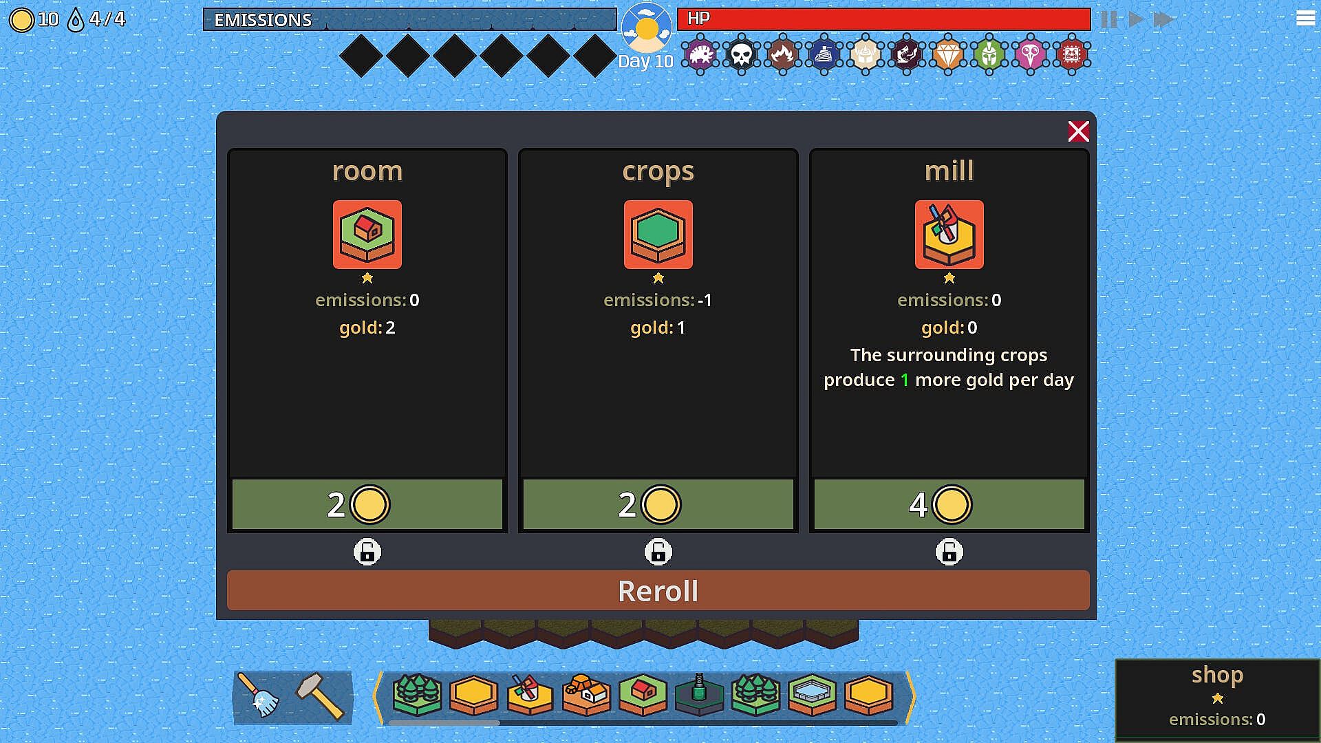 Dozens of different land plots include buildings, turrets, and wonders. Most of the time, two identical plots can be combined to form a higher-level plot.