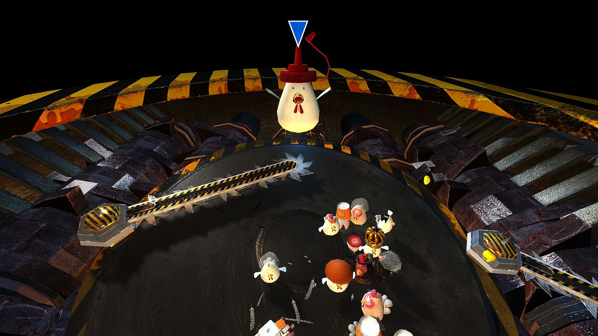 80 chicken players compete to be the last standing on an unstable disk above a gruesome grinder. The last player standing on the disk avoids being turned into a chicken nugget. Become #1 on the leaderboard and you'll be rewarded with a golden crown.