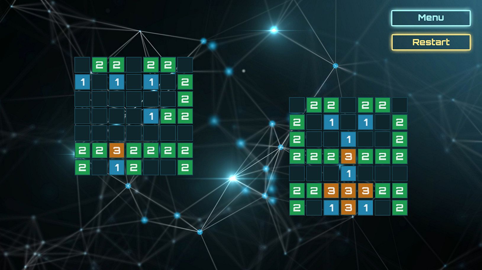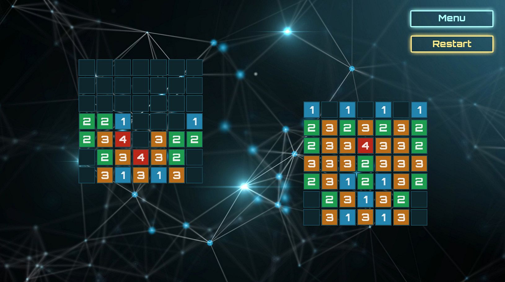 You must repeat the indicated image from the numbers. But it isn't so easy - you can create only blocks with a "1". Fortunately, the numbers interact with each other. You can only create a block with a "1", but when you create it, the numbers on all adjacent blocks are incremented by 1.