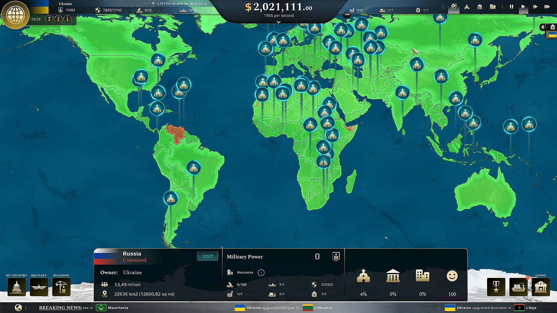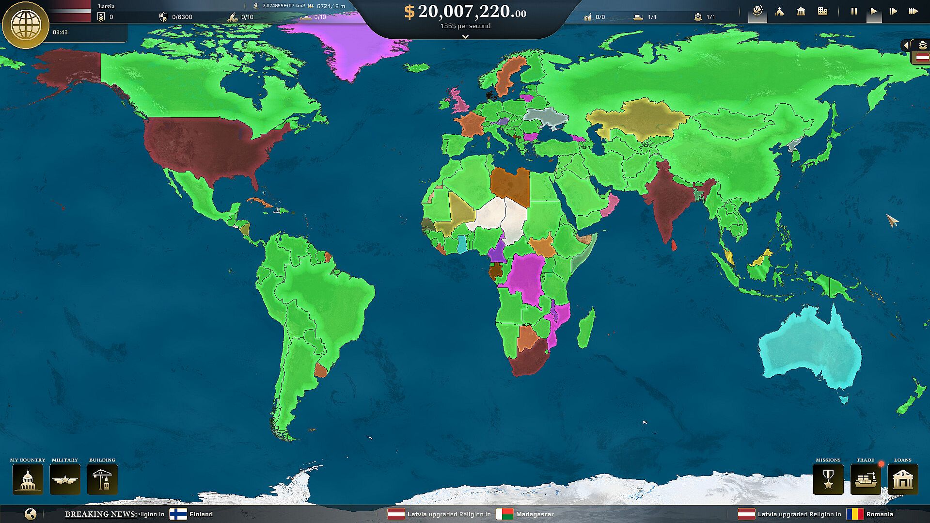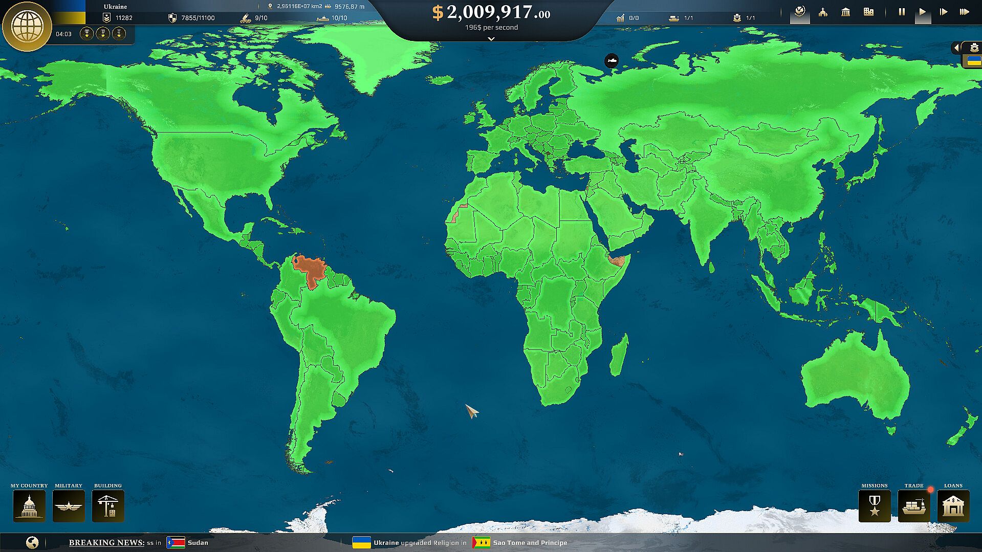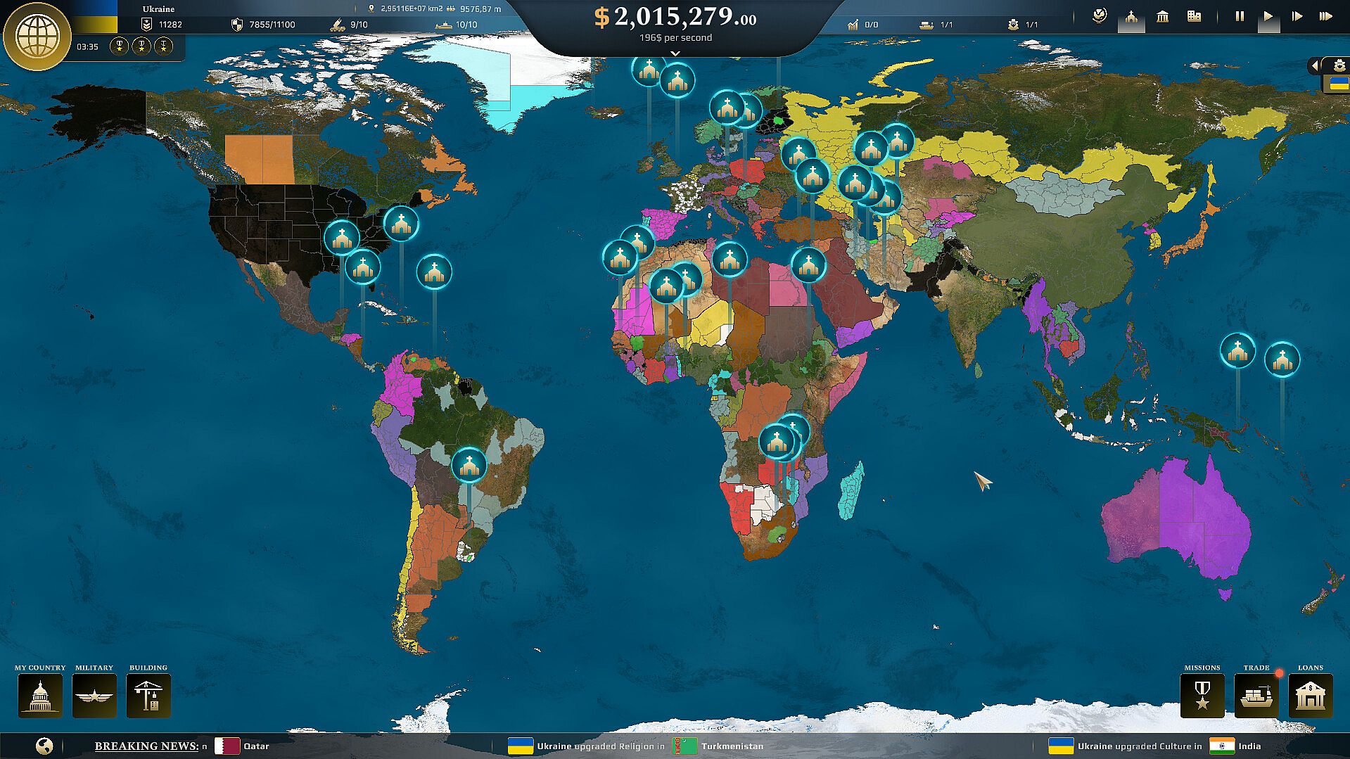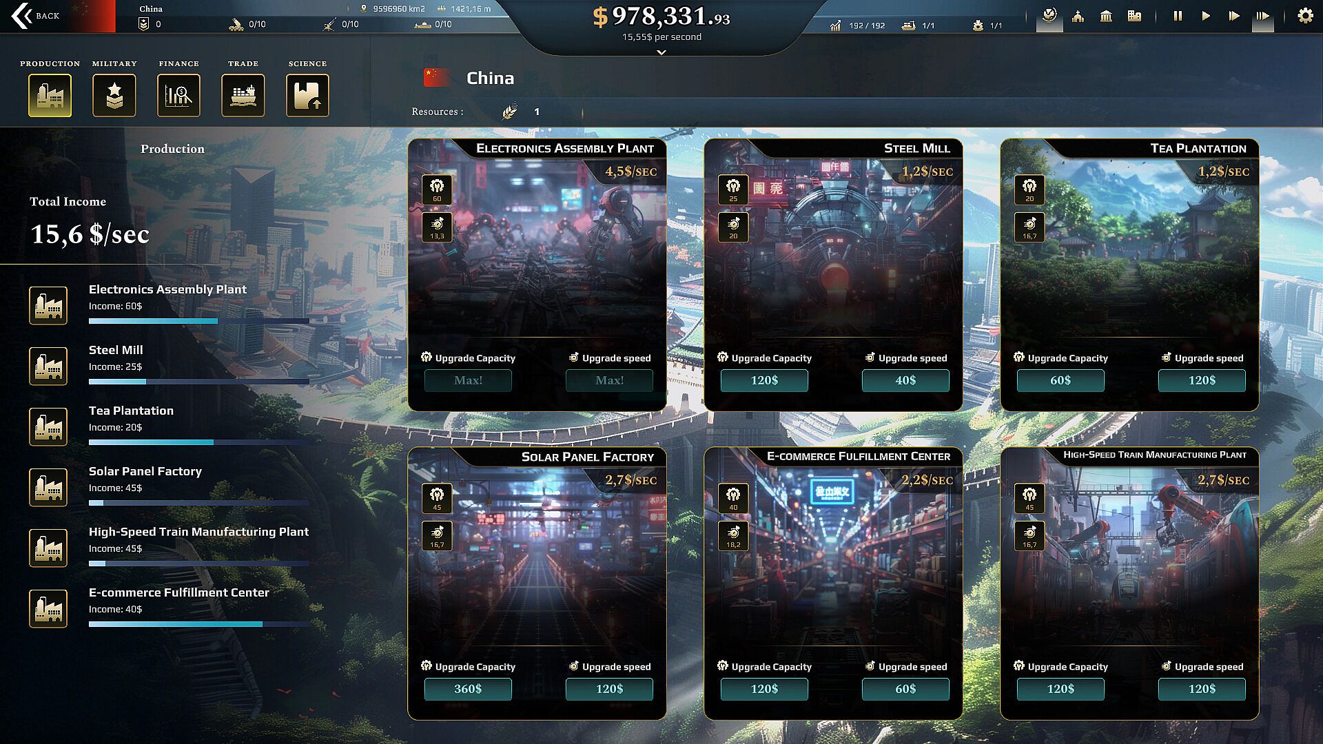 Money fuels power. Your income grows every second—upgrade factories, businesses, and trade routes to increase your wealth and expand your reach. The more countries you control, the more resources you command.