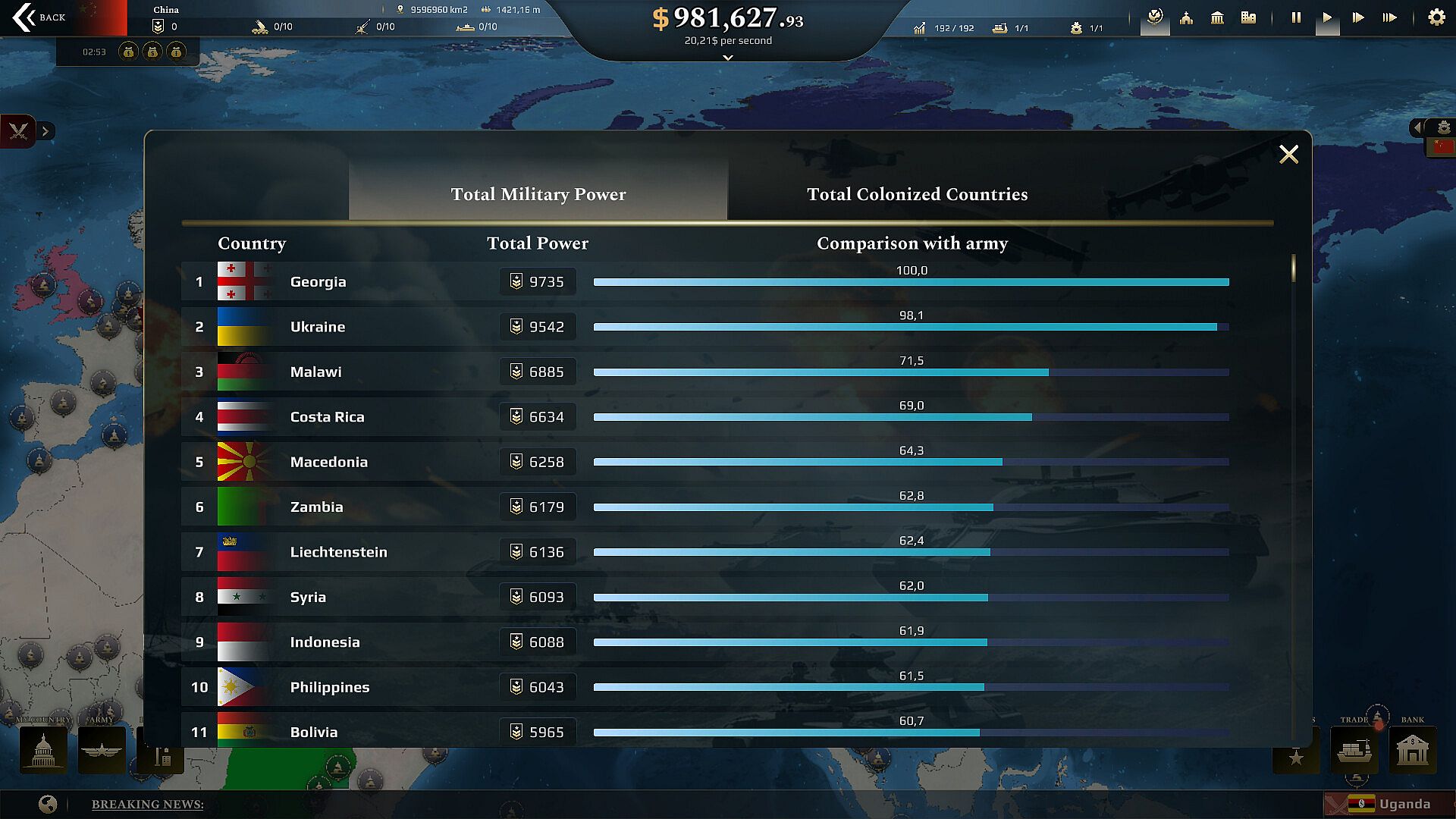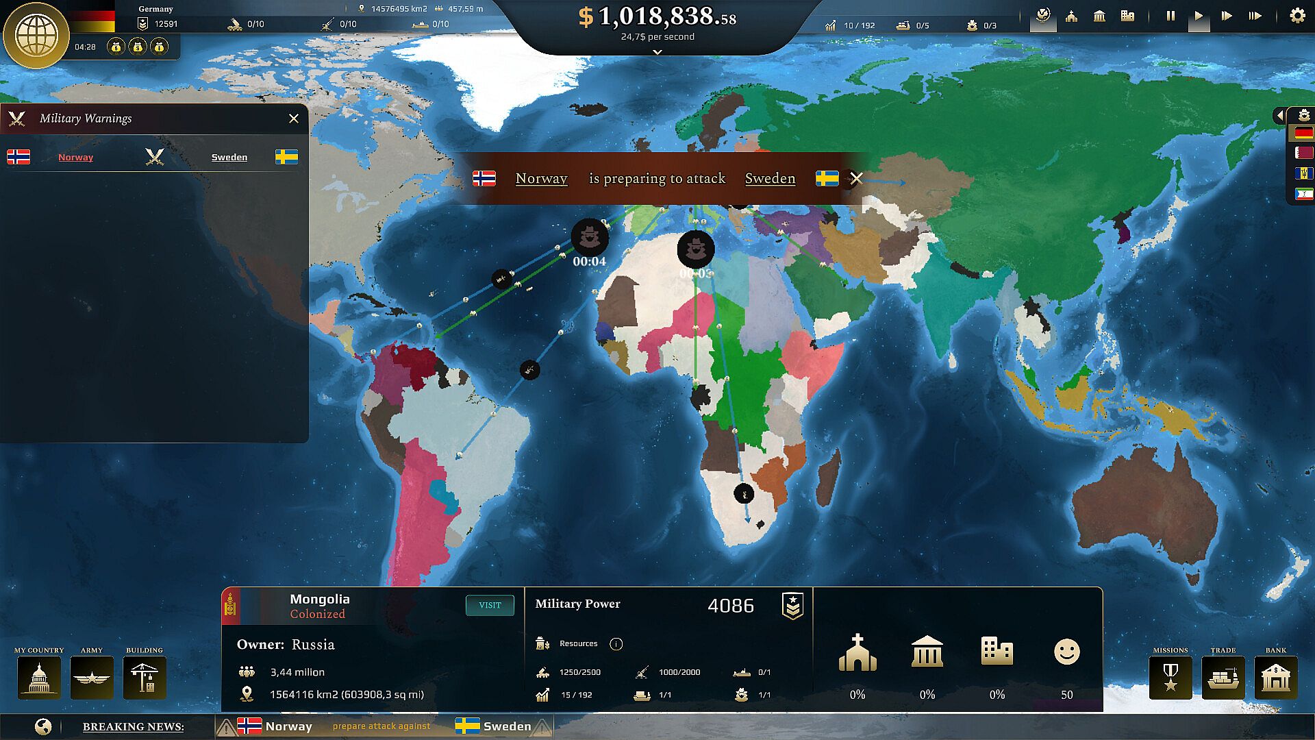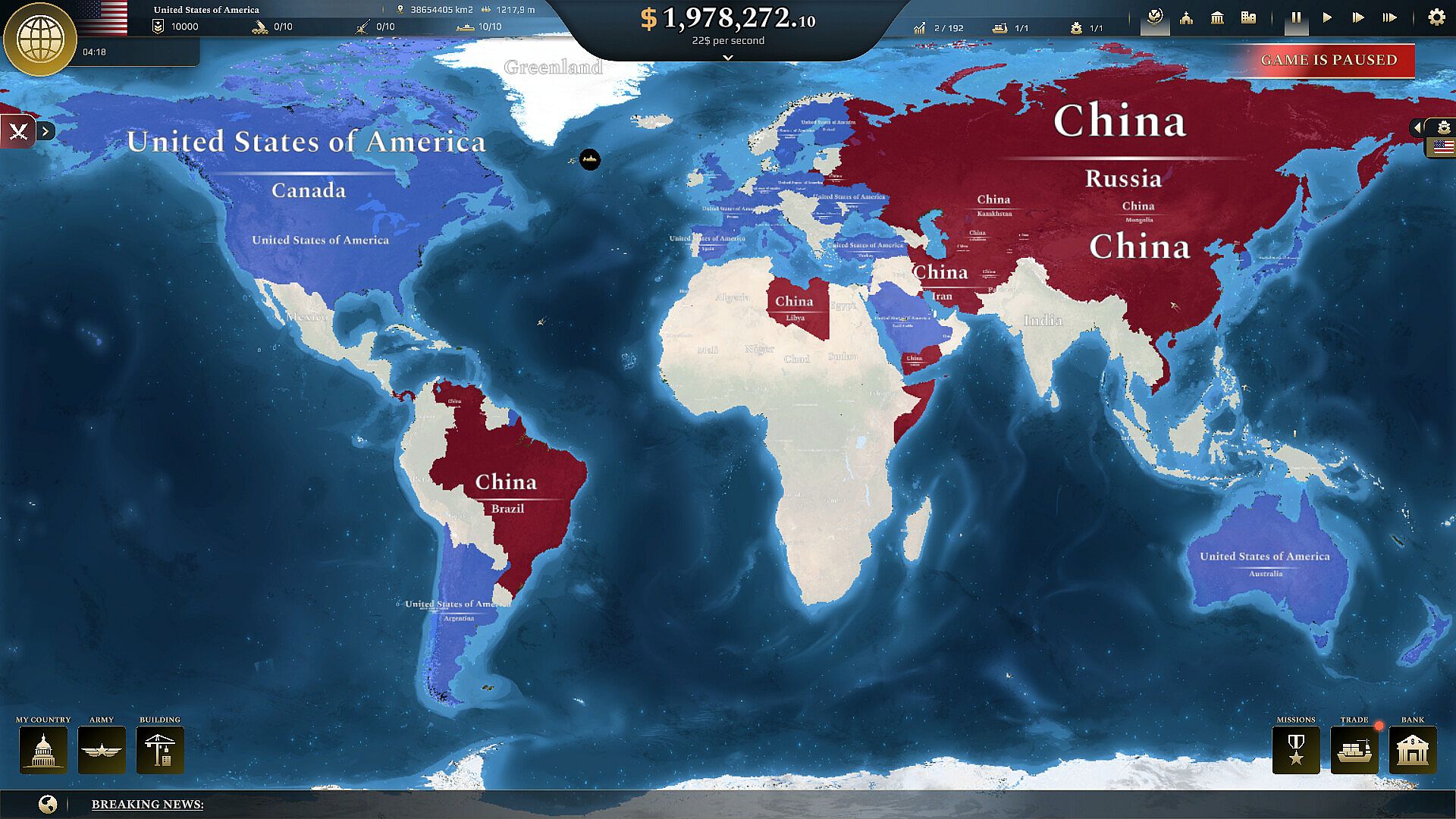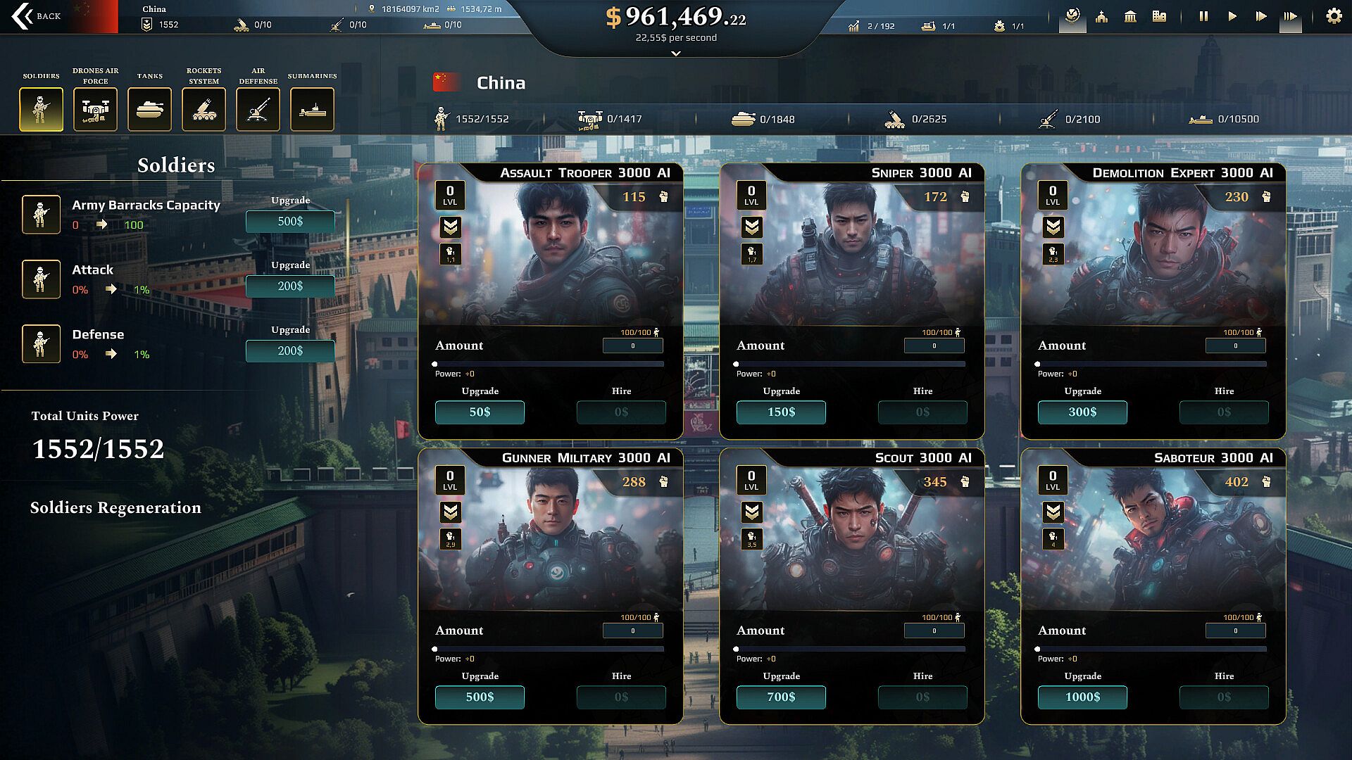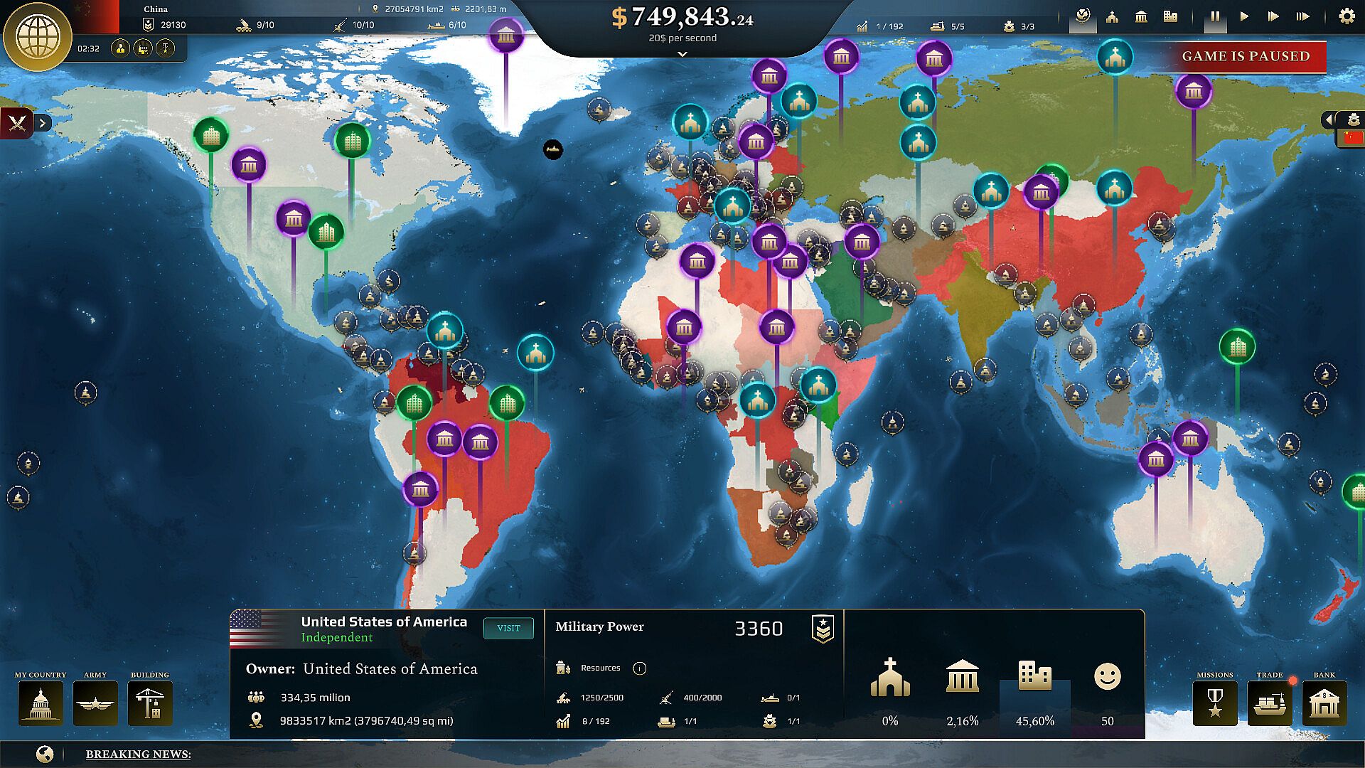 Money fuels power. Your income grows every second—upgrade factories, businesses, and trade routes to increase your wealth and expand your reach. The more countries you control, the more resources you command.