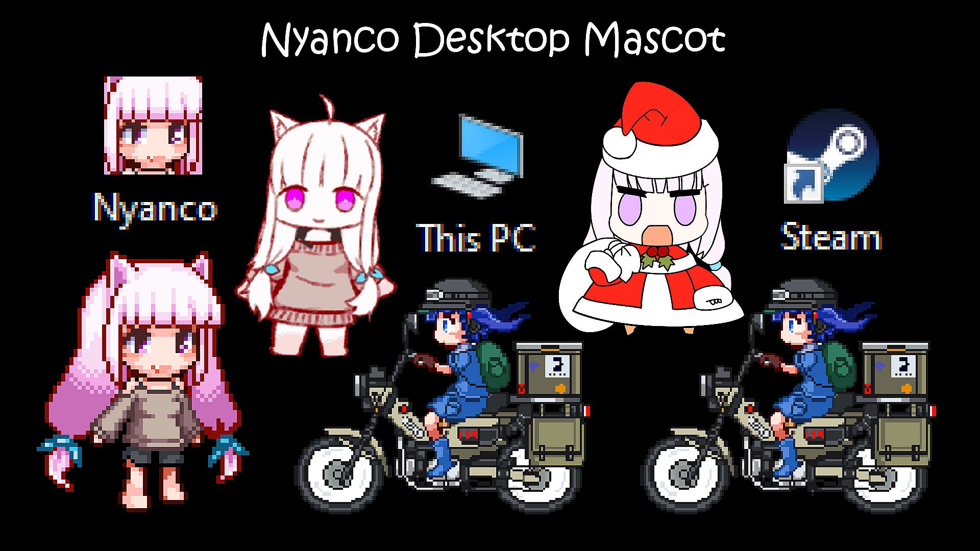 Welcome to the Nyanco Desktop Mascot app. In this application, you can set and control your favorite 2D character on your PCās desktop!