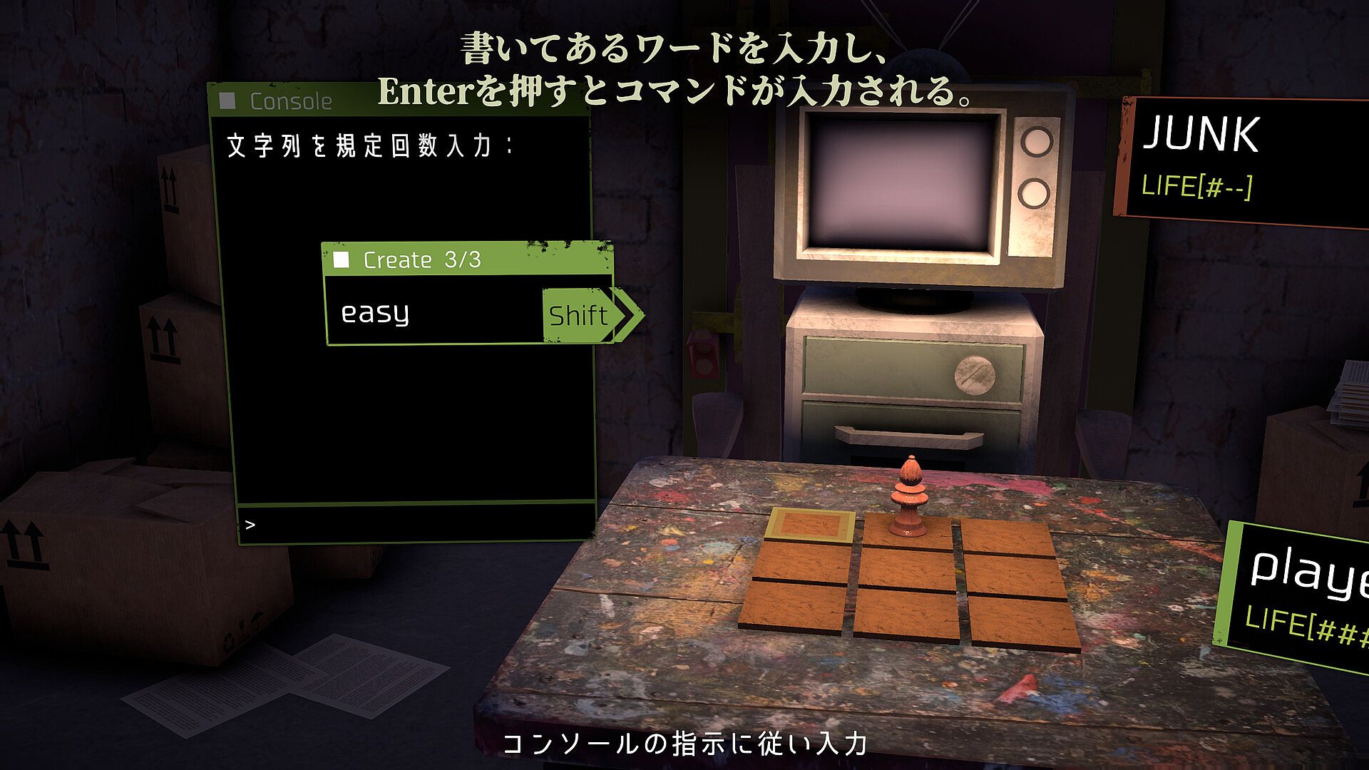 By repeatedly typing short words, players can execute desired actions. Stronger actions require completing more typing tasks.