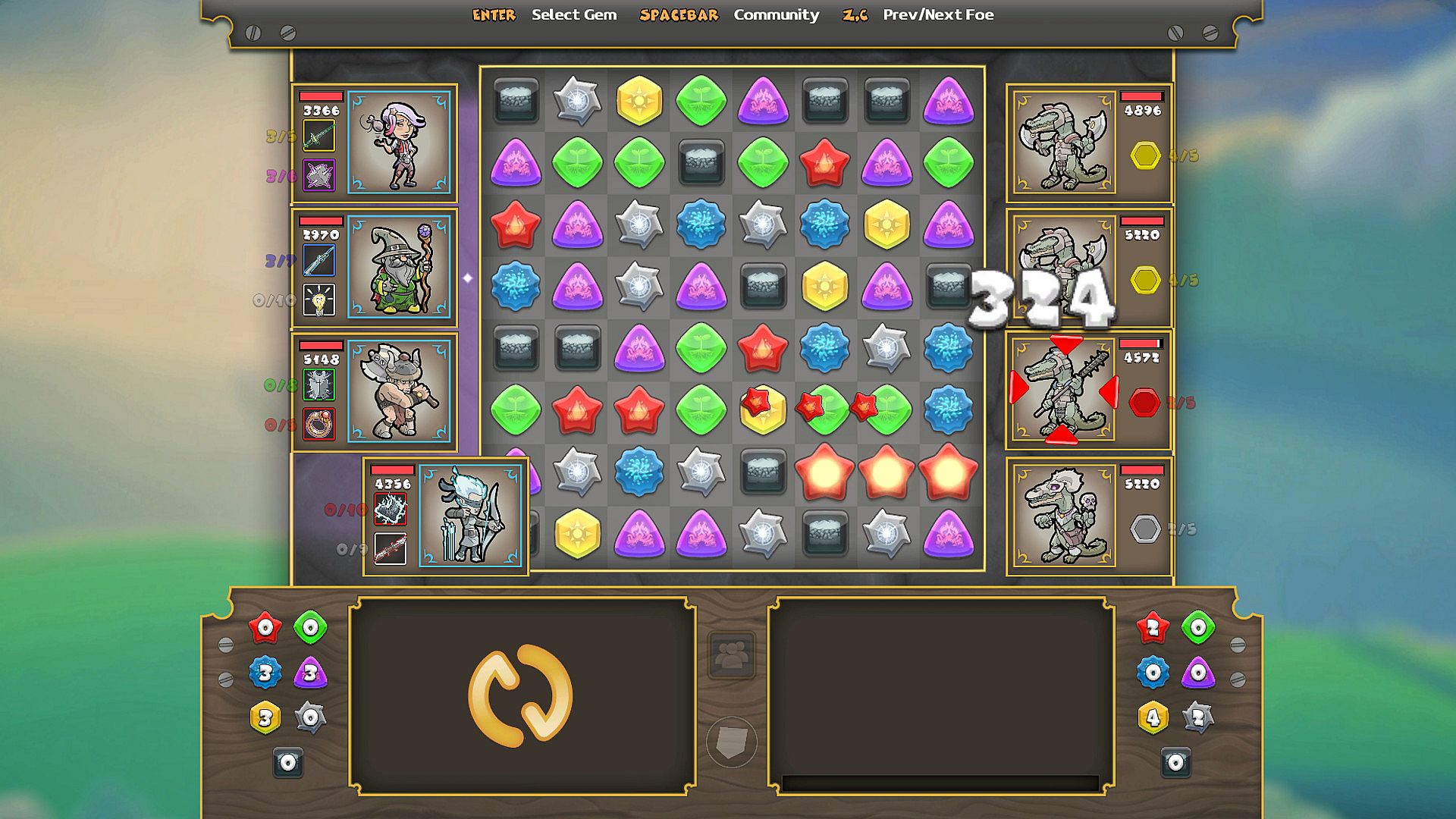 Playing Oafmatch you will quickly discover that this is a game for match-three lovers and RPG-lovers alike. It is also a game for tinkerers, as beneath its friendly exterior lurks a very deep well of party-building and party-outfitting strategic gameplay.