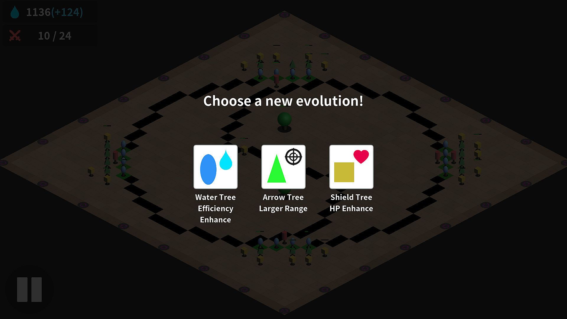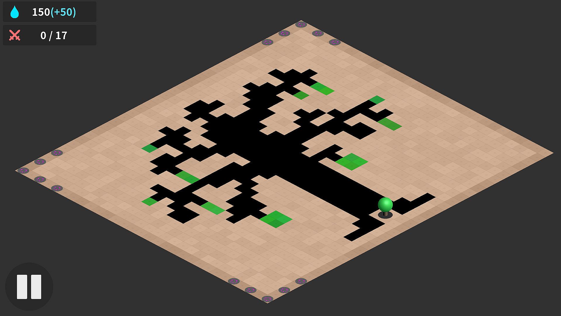 Oasis Defense is a minimalist tower defense game. It is very easy to start. You will plant trees to fight against the ghost army, and choose your own evolutionary path among the random gained rewards to protect your oasis.
