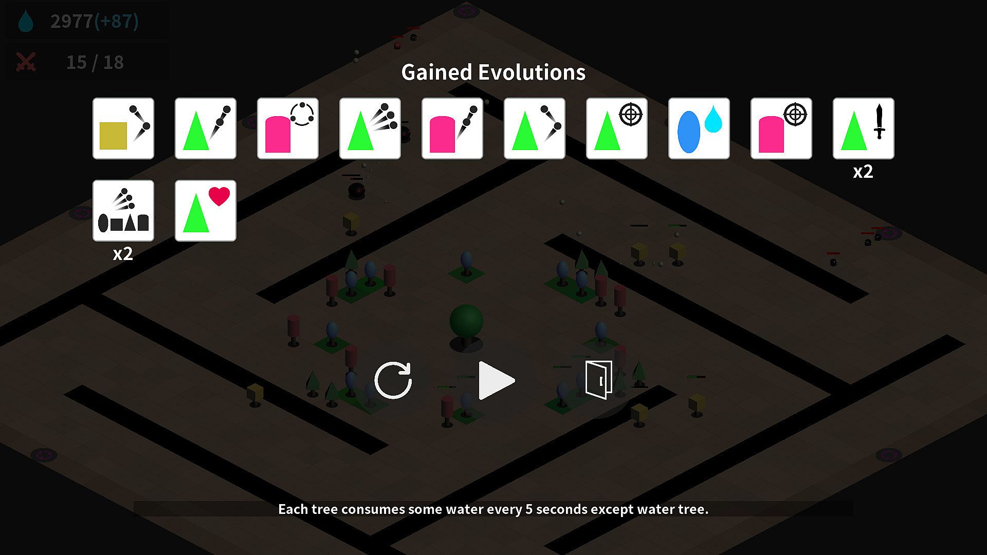 The arrangement of trees has a high degree of freedom. You can fully use your artistic talent, but at the same time, you should pay attention to that all trees will be attacked by the enemy, so the defensive formation is very important. You should carefully protect the fragile resource trees and let the high damage trees have good positions.