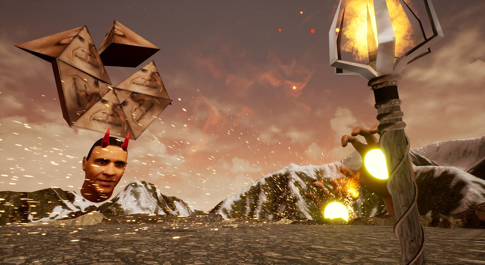 Feel yourself in a skin of an evil sorcerer in a quick and harsh boss fight. No progression, no grinding — you are already the most powerful creature. The only thing you have to do is to end your journey at the top of the mountain. Challenge yourself and try to defeat Obama on every phase. If you love souls-like games then you must try this