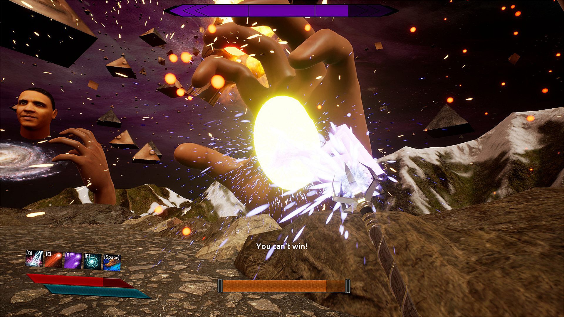 Step into the role of an evil sorcerer locked in a brutal boss fight against Obama at the mountain's peak. This indie action game skips progression and grinding, thrusting you straight into intense combat with spells and abilities. Battle through escalating phases where quick reactions decide victory, pushing your skills to the edge on Hardcore or UltraHardcore difficulties.