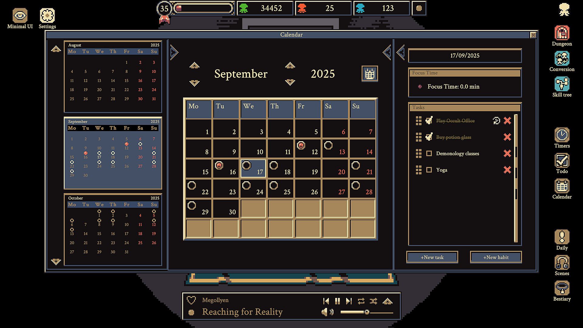Plan your day with an integrated calendar, to-do lists, daily quests, and skill trees designed to help you conquer both your real-life tasks and the supernatural distractions.