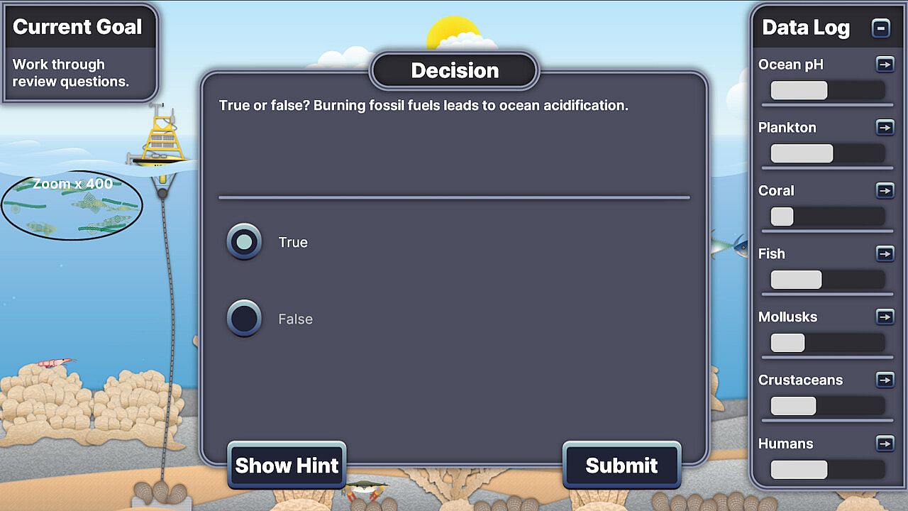 - Through a series of interactive decisions and evaluations, students will learn about the causes and effects of ocean acidification and evaluate solutions that can help reduce its impact on marine ecosystems and people.