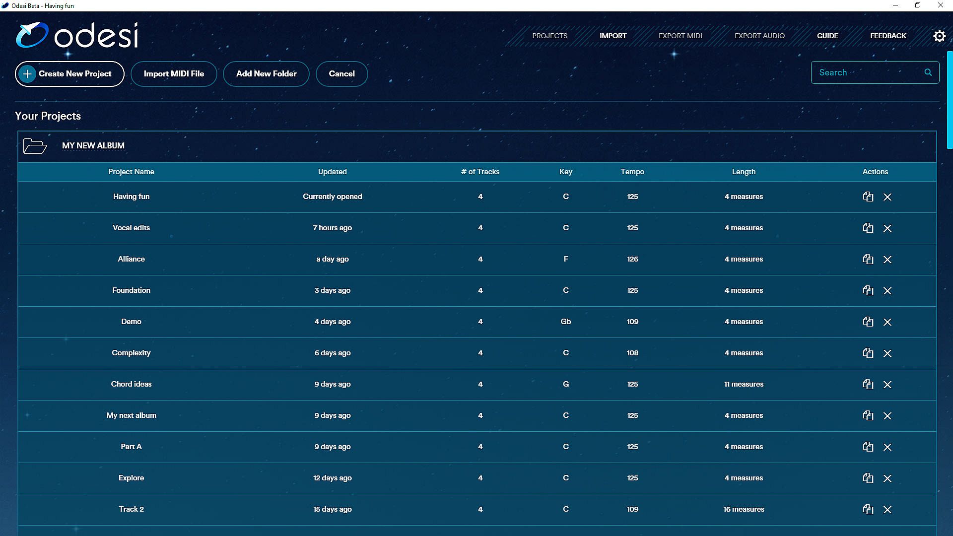 When you’re done with your Odesi session, you will have a 100% composed track that’s ready for production. All your melodies, basslines and chord progressions will be finished.