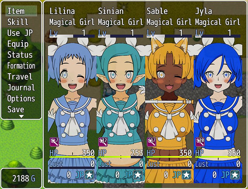 Along the way, she'll make friends, fight enemies and bosses, and experience many, many different status conditions, ranging from mind control to transformations to just about anything you can think of!