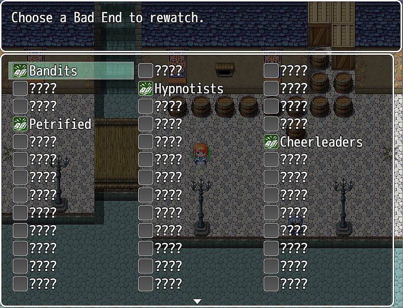 Losing or surrendering to an enemy will trigger a Bad End cutscene, featuring a wide variety of fetishes, including mind control, petrification, enslavement, encasement, possession, gyaru/bimbofication, time stopping, corruption, and many more!