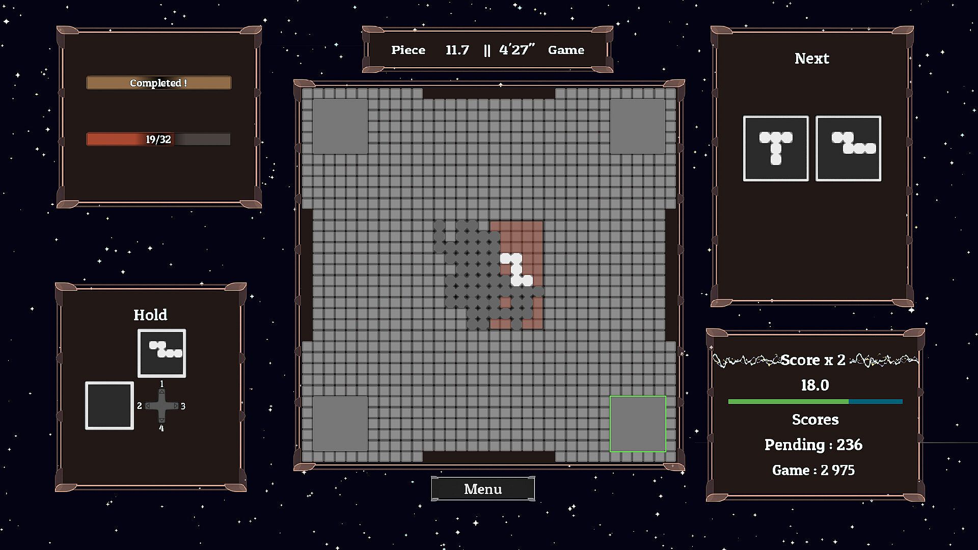 There are dozens of pieces and patterns, as well as multiple grids and skins, and four difficulty modes awaiting you, for an infinite number of possibilities thanks to randomness !