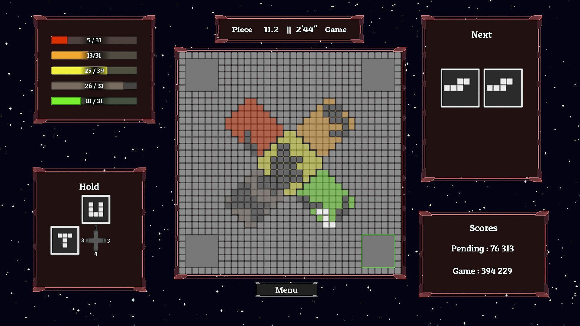 In this game, you have to fill patterns with pieces, to obtain the highest possible score.