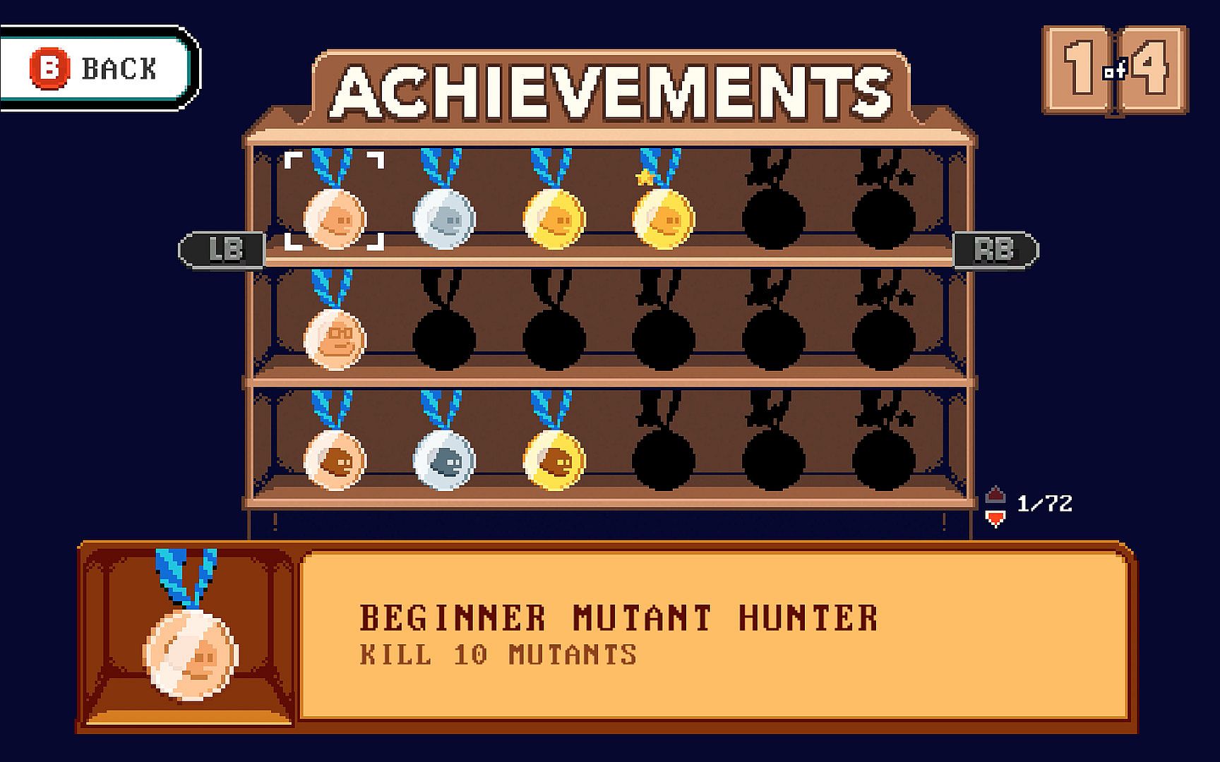 Collect achievement trophies for successfully completed challenges in the game like for example "Kill 10,000+ mutants", "Survive 5 waves without using power-ups" or "Kiss 30 times in one game"